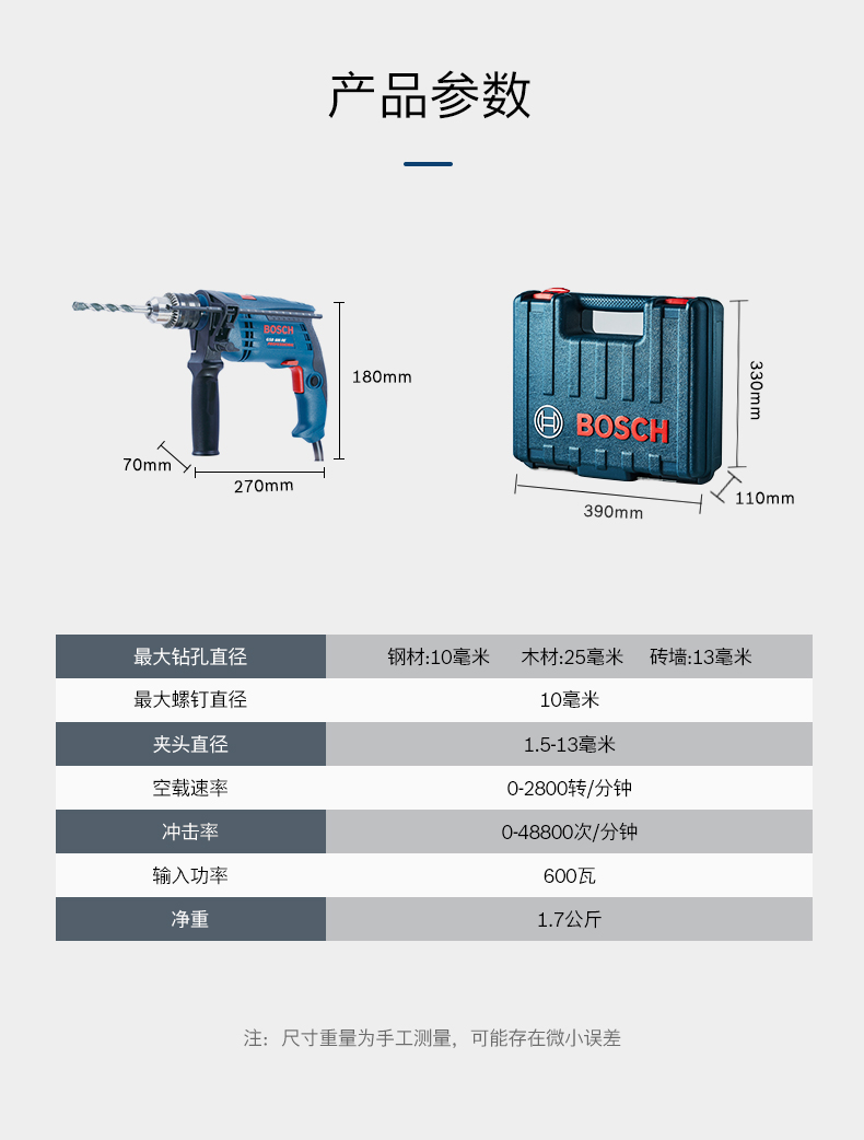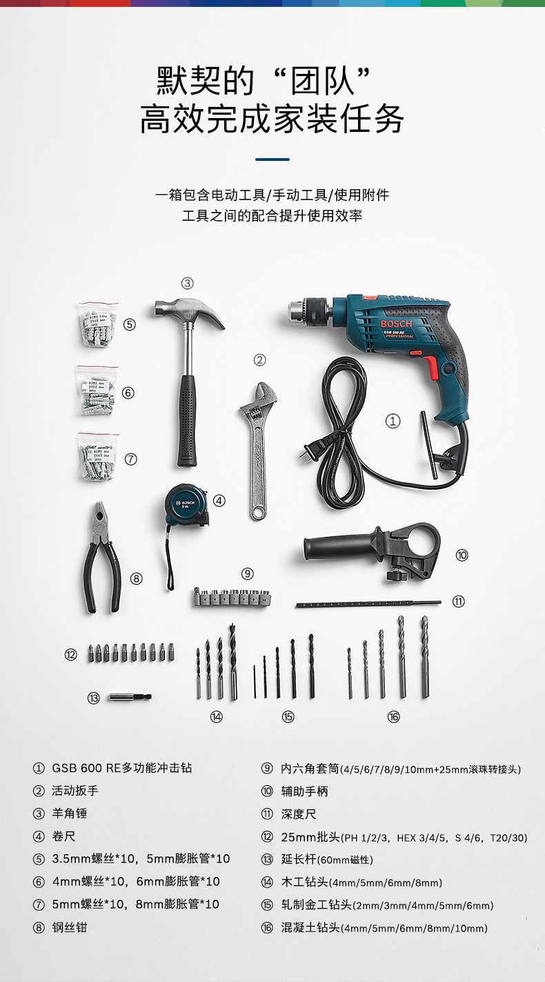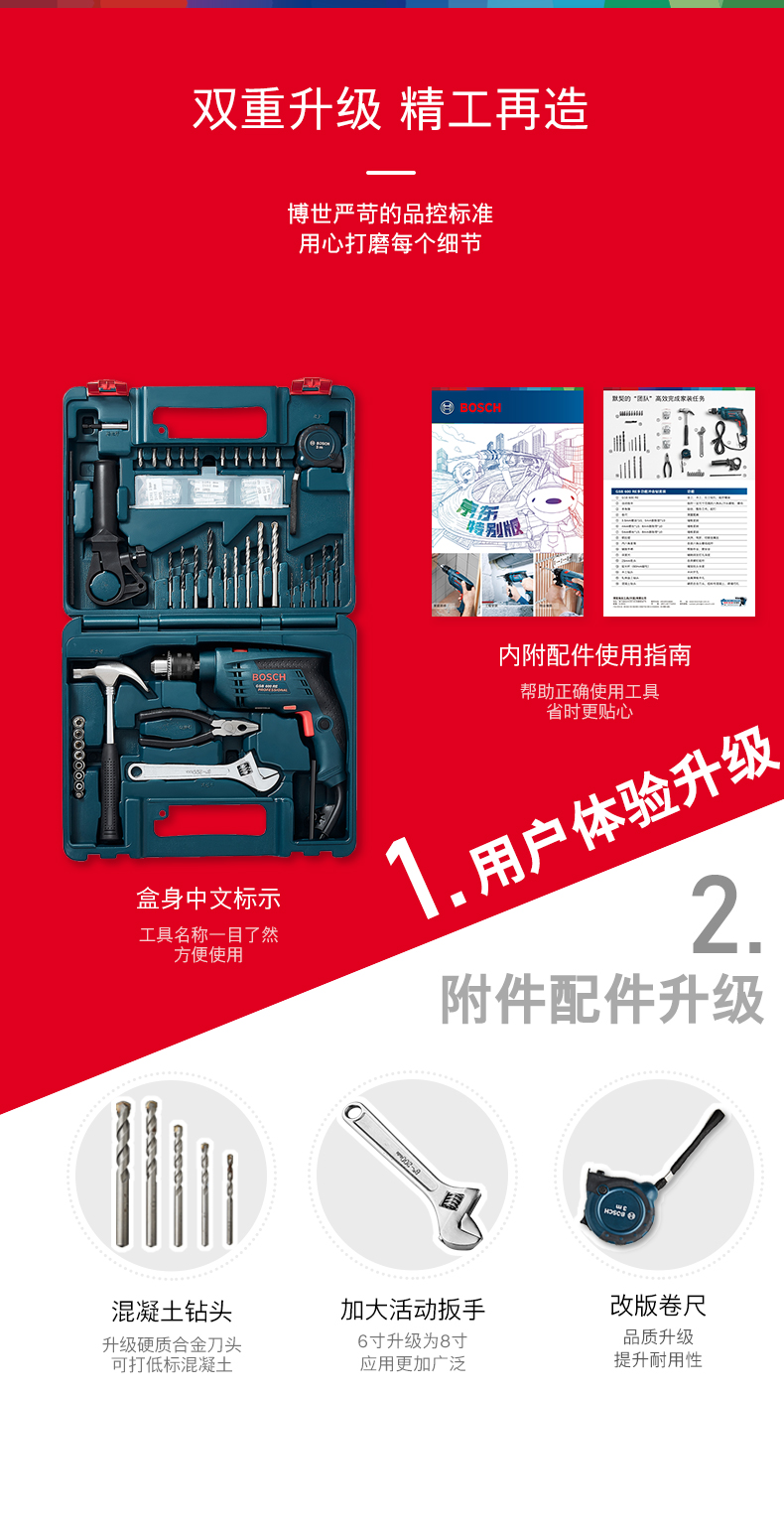商品名称:博世GSB600RE 多功能冲击钻手电钻电动工具箱(99附件+手动工具)13毫米600瓦(单位:个)