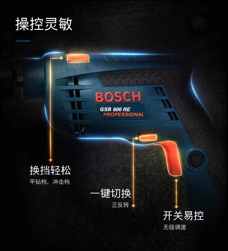 博世GSB600RE 多功能冲击钻手电钻电动工具箱(99附件+手动工具)13毫米600瓦