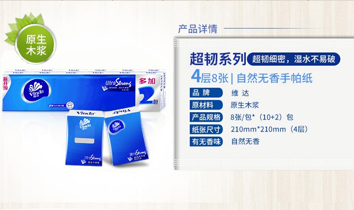 商品名称:维达V0036蓝达经典手帕纸 4层无香 12包/条 30条/箱 单位:条
