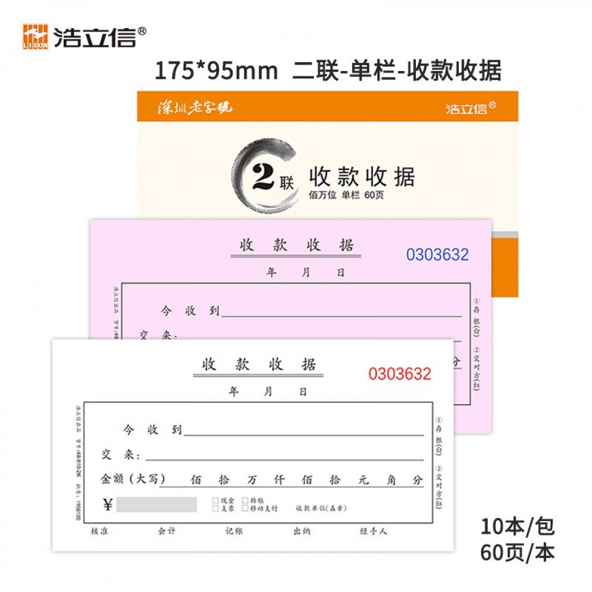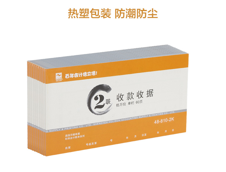 浩立信48-810-2K百万位单栏二联收款收据175*95mm 10本/包×60页/本 带撕裂线无碳复写(单位:本)