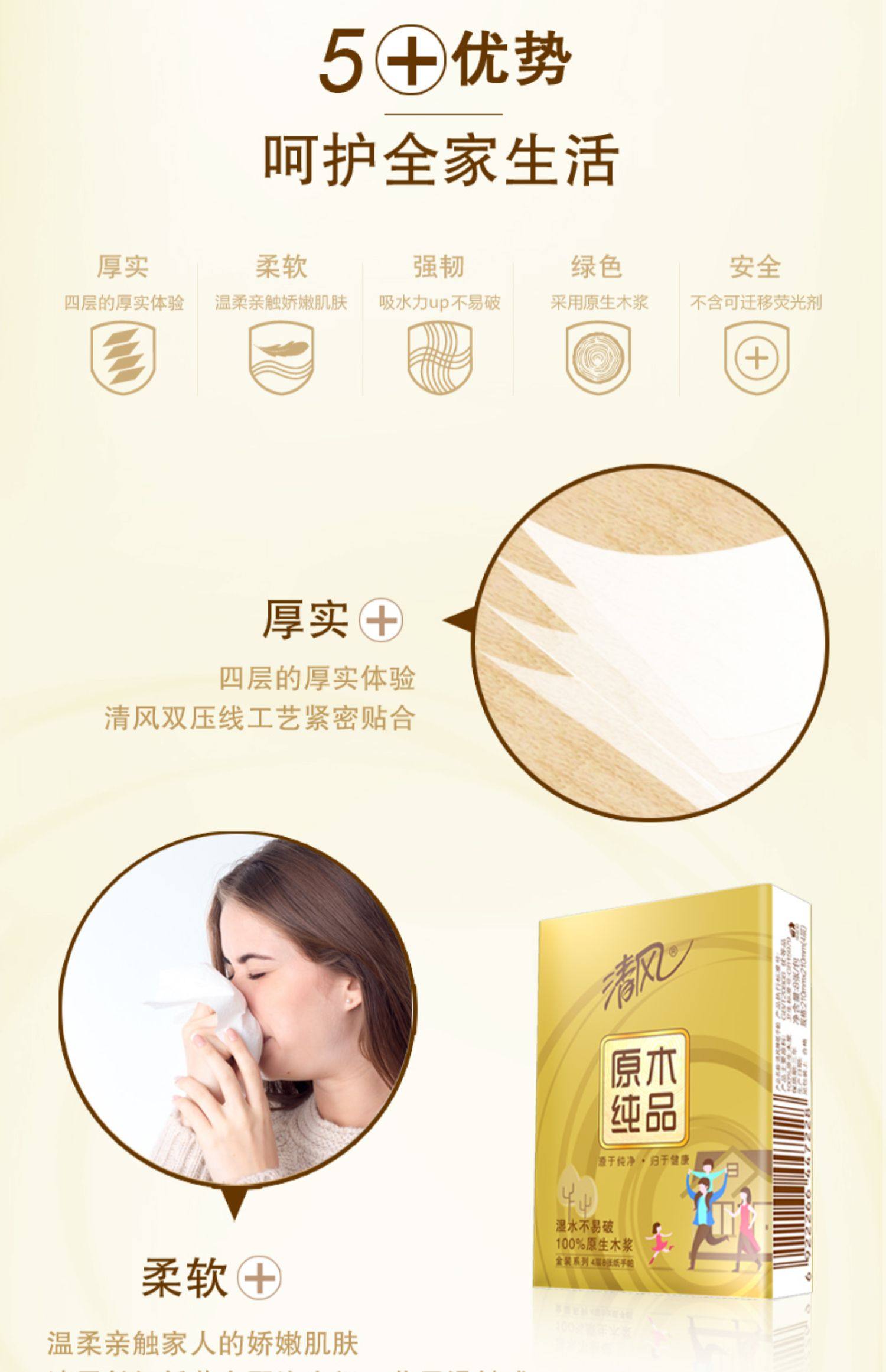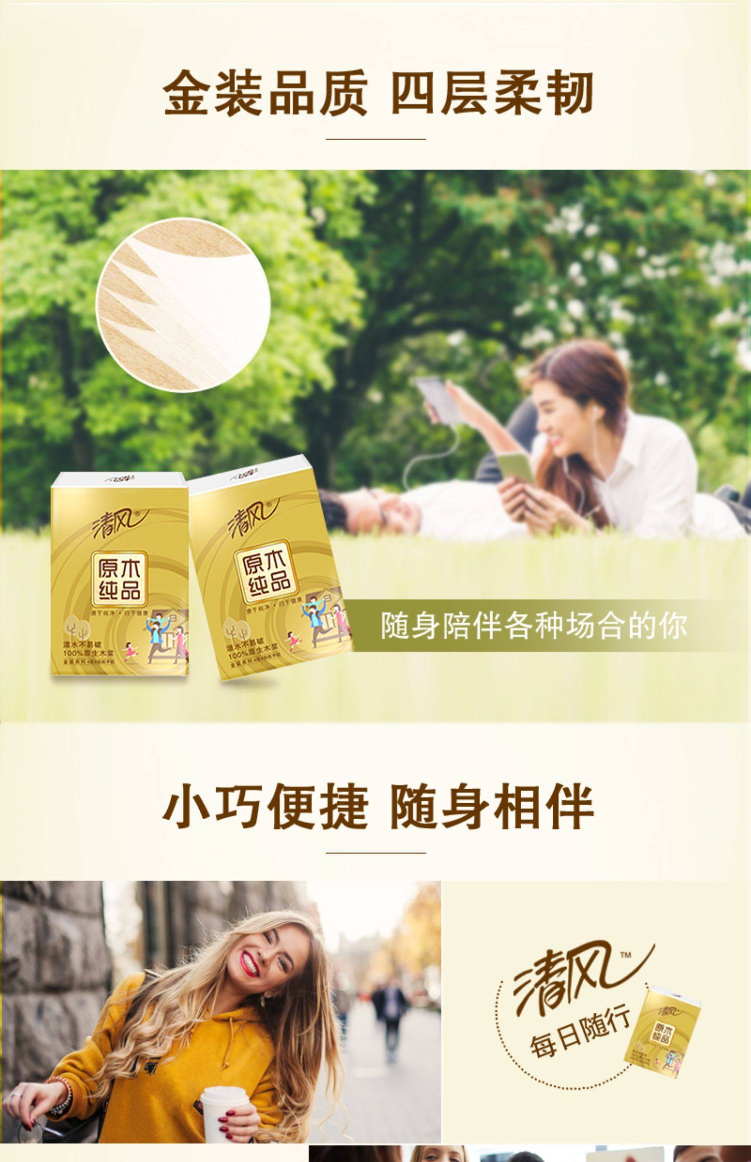 清风B64HJK金装手帕纸24包4层7张/包(单位:条)