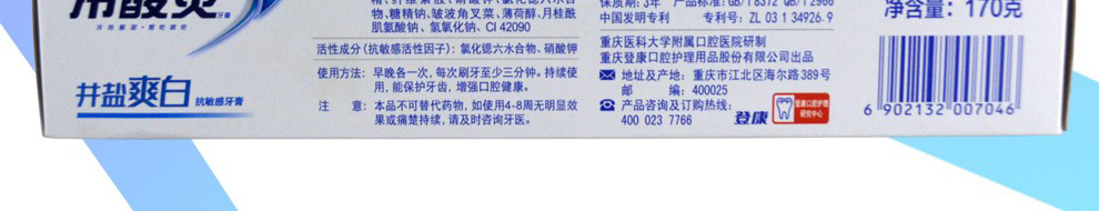 商品名称:冷酸灵井盐爽白抗敏感牙膏170g(单位:支)