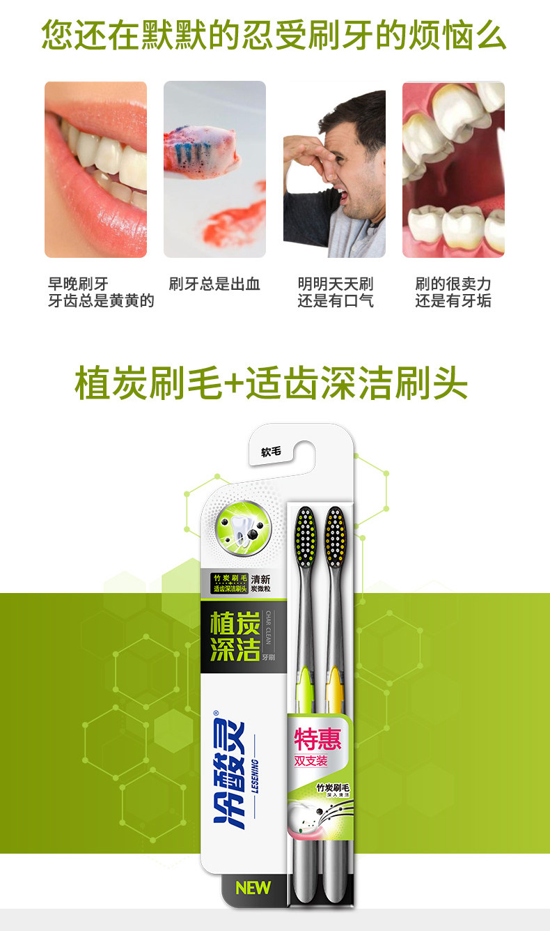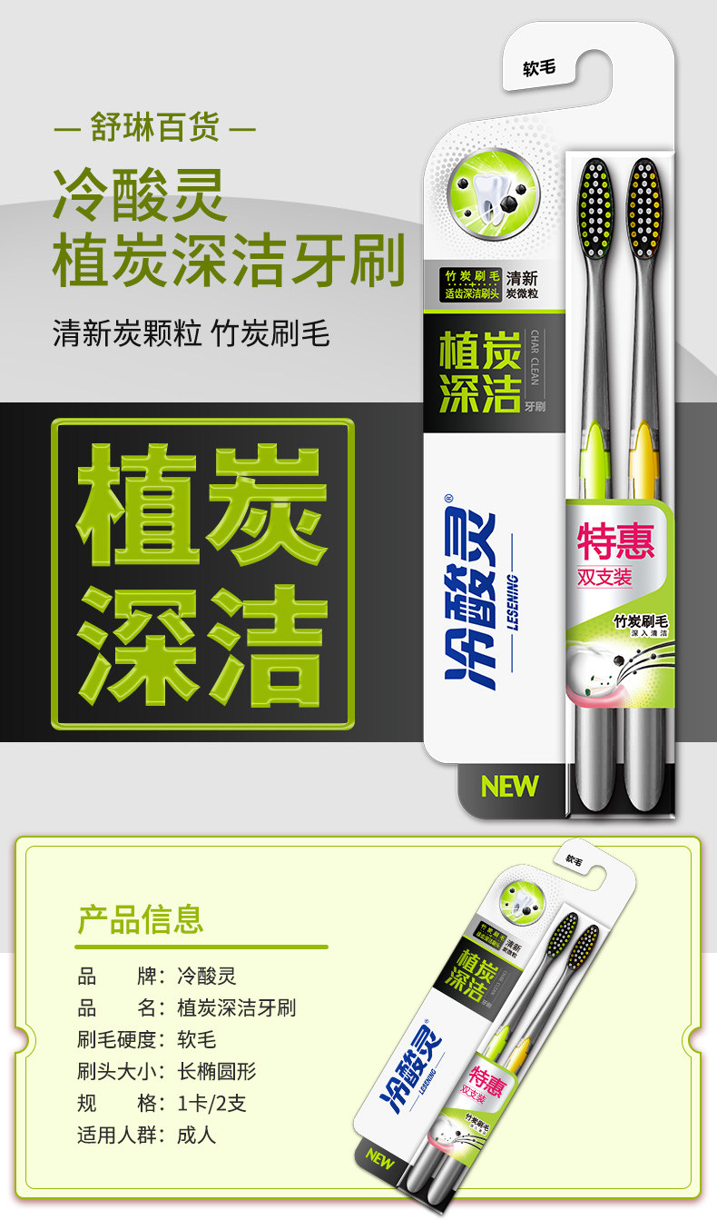 商品名称:冷酸灵植炭深洁牙刷2支装(软毛)(单位:组)