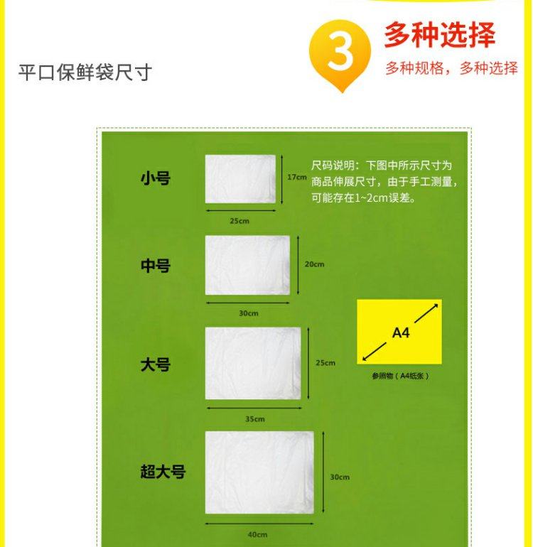 商品名称:佳能RP3in1平口点断式保鲜袋三合一装(单位:组)
