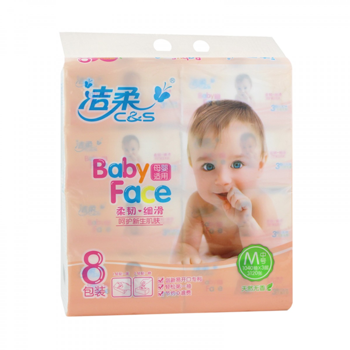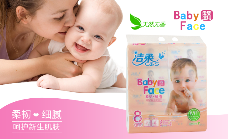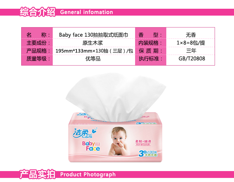 商品名称:洁柔BabyFace抽纸130抽8包(单位:提)