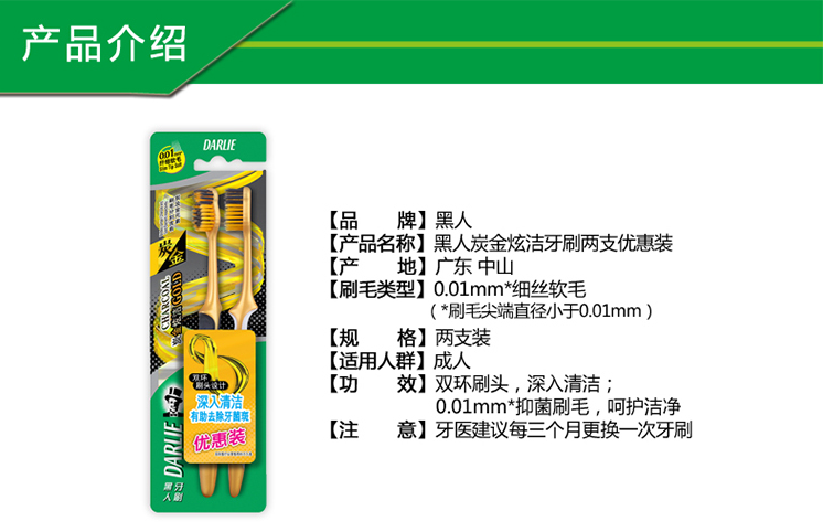 商品名称:黑人炭金炫洁牙刷两支优惠装(单位:组)