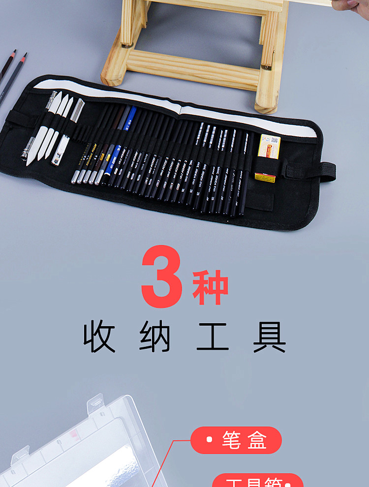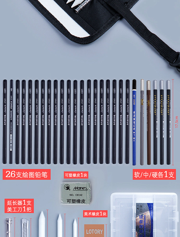 商品名称:马利素描套装绘画炭笔【基础版】手提笔盒/21件套装(单位:套)