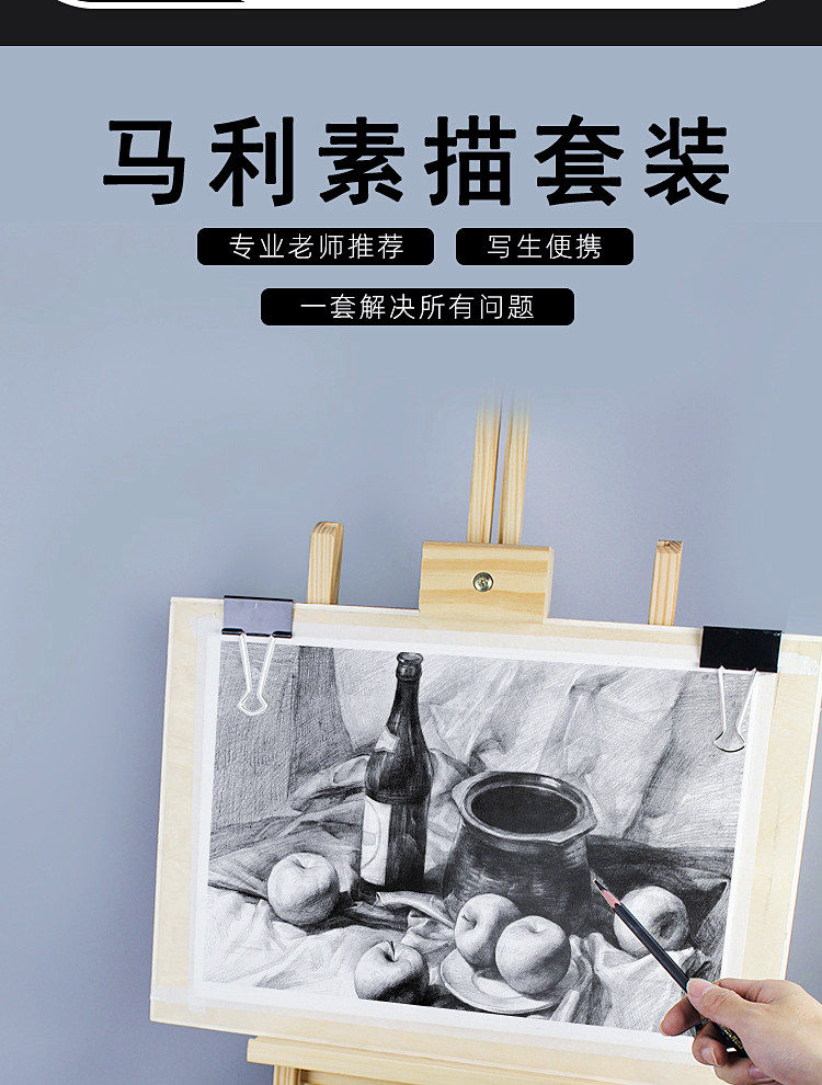 马利素描套装绘画炭笔【基础版】手提笔盒/21件套装(单位:套)