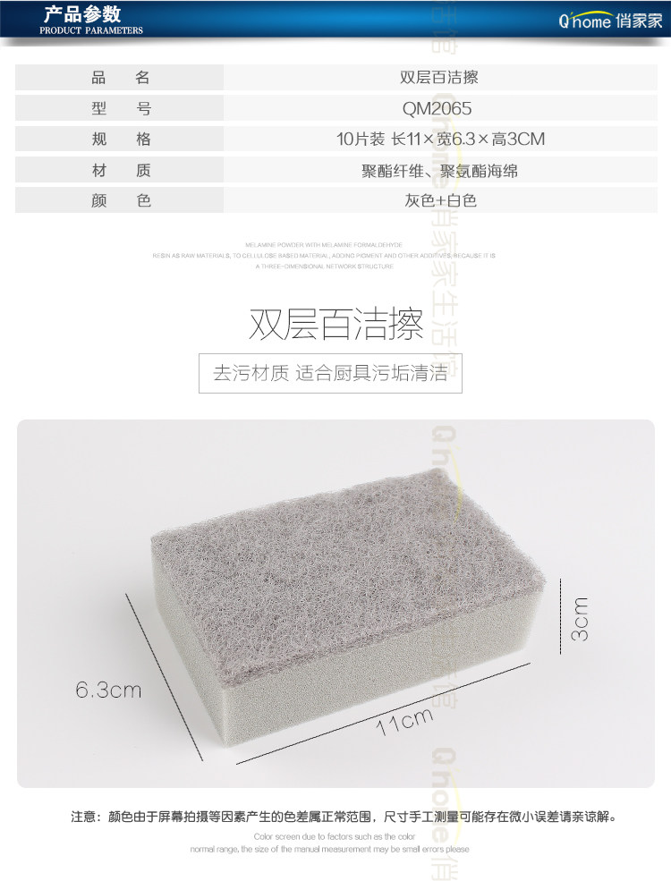 商品名称:清清美QM-2065双层百洁擦 10片/袋(单位:袋)