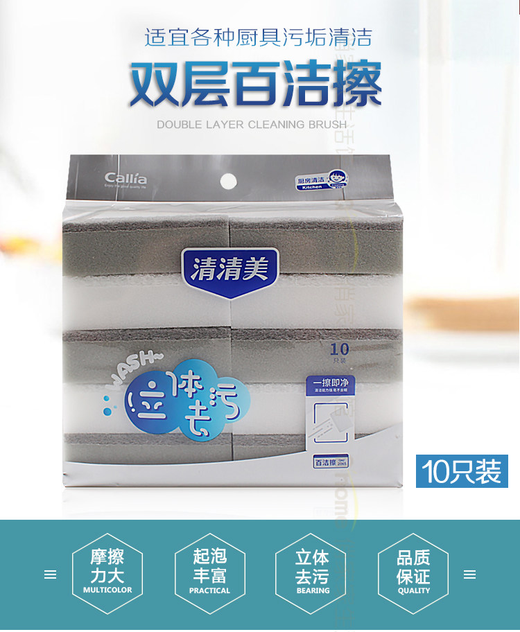 清清美QM-2065双层百洁擦 10片/袋(单位:袋)