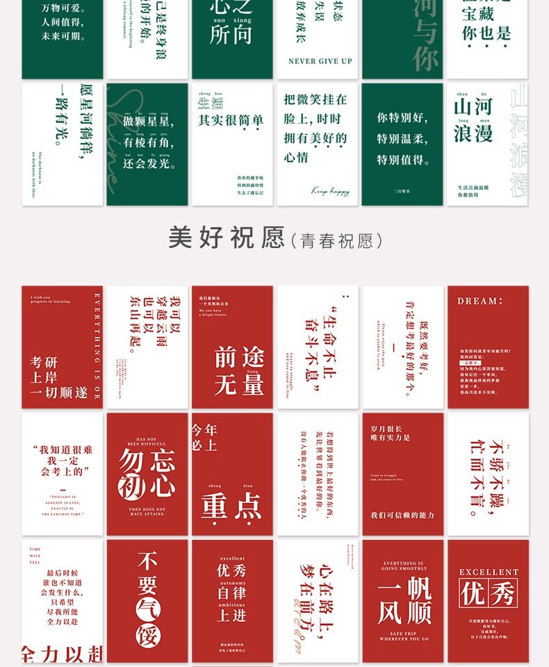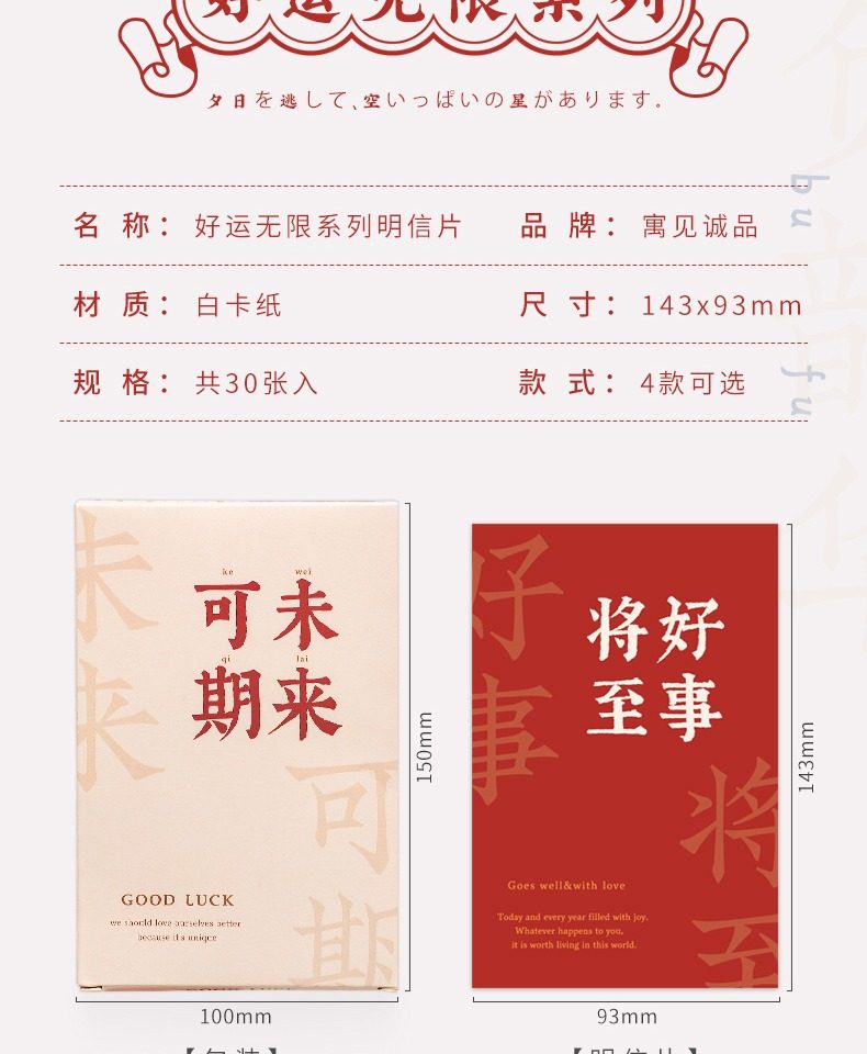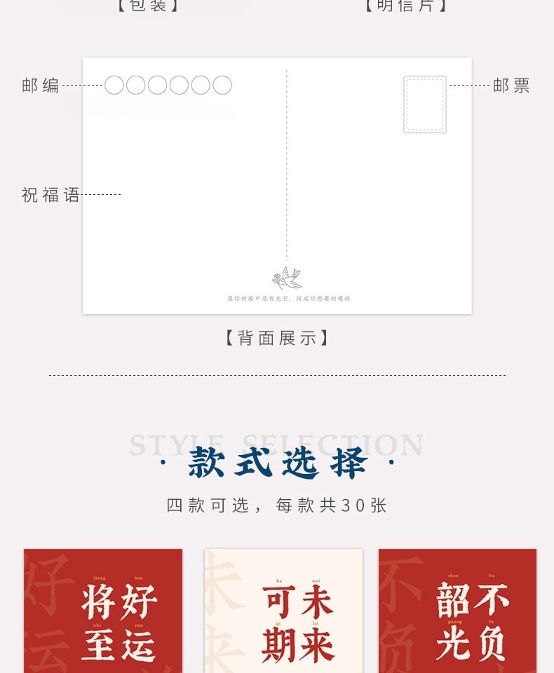商品名称:原创励志文字明信片 不负韶光 30张/包(单位:包)