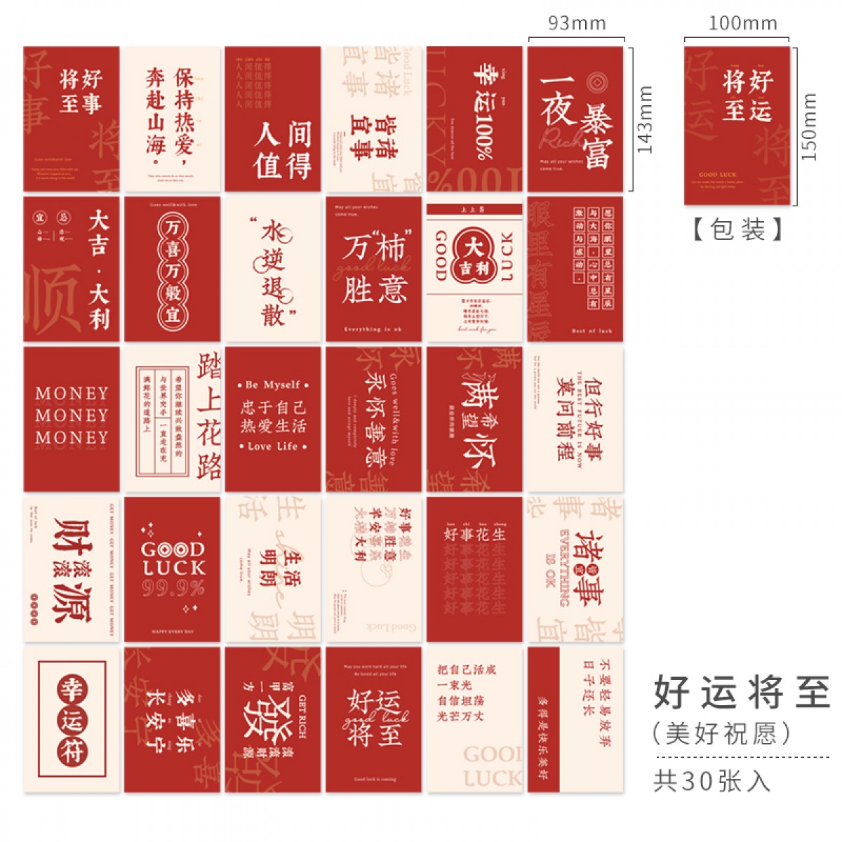 商品名称:原创励志文字明信片 好运将至 30张/包(单位:包)