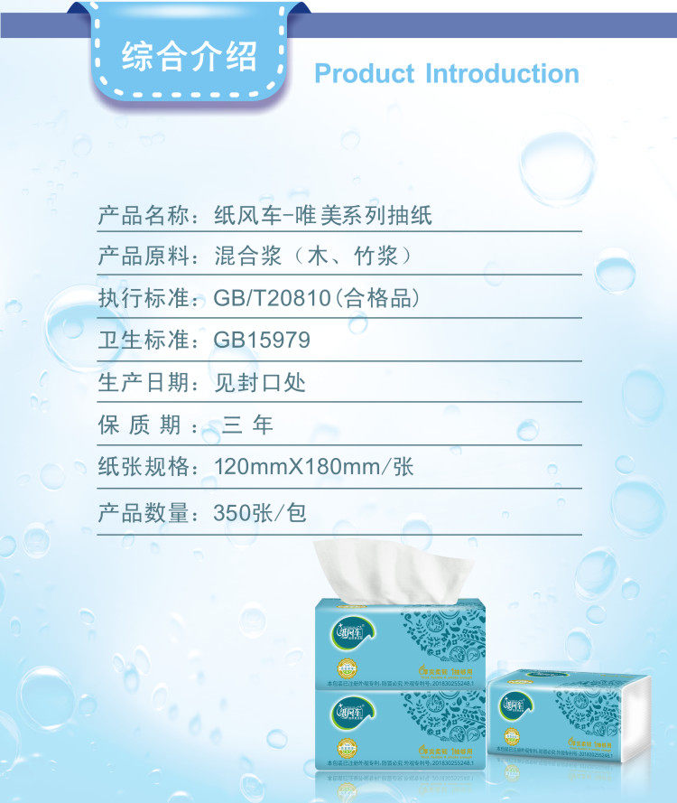 商品名称:纸风车唯美系列抽纸350张/包 10包/提 10提/箱 (单位:提)