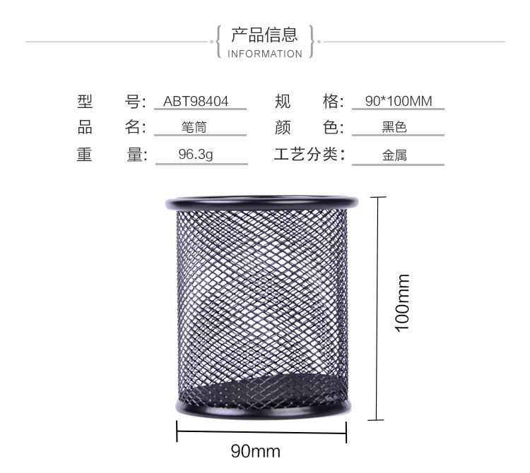 商品名称:晨光ABT98404金属网格圆形笔筒 黑色(单位:个)