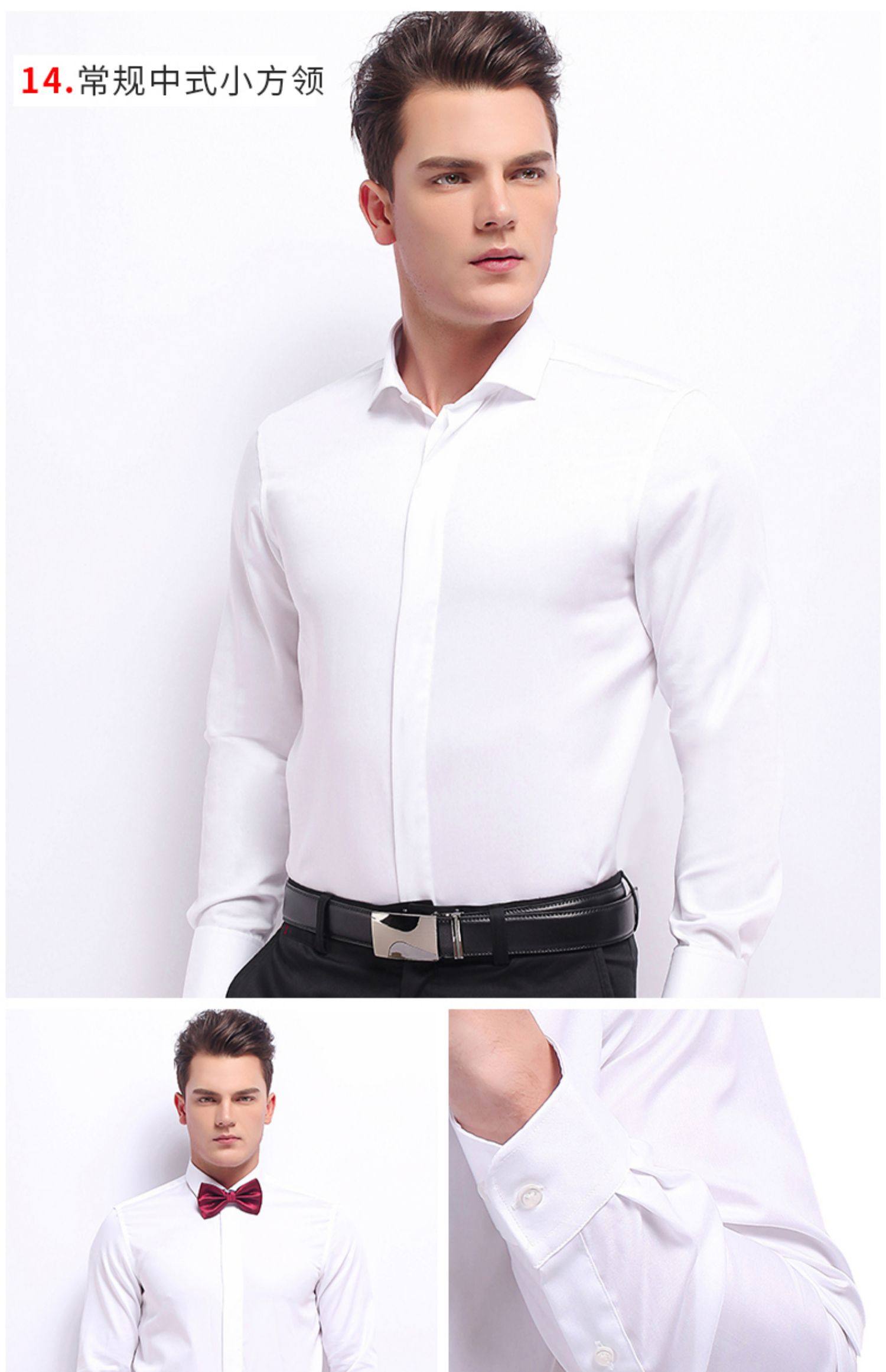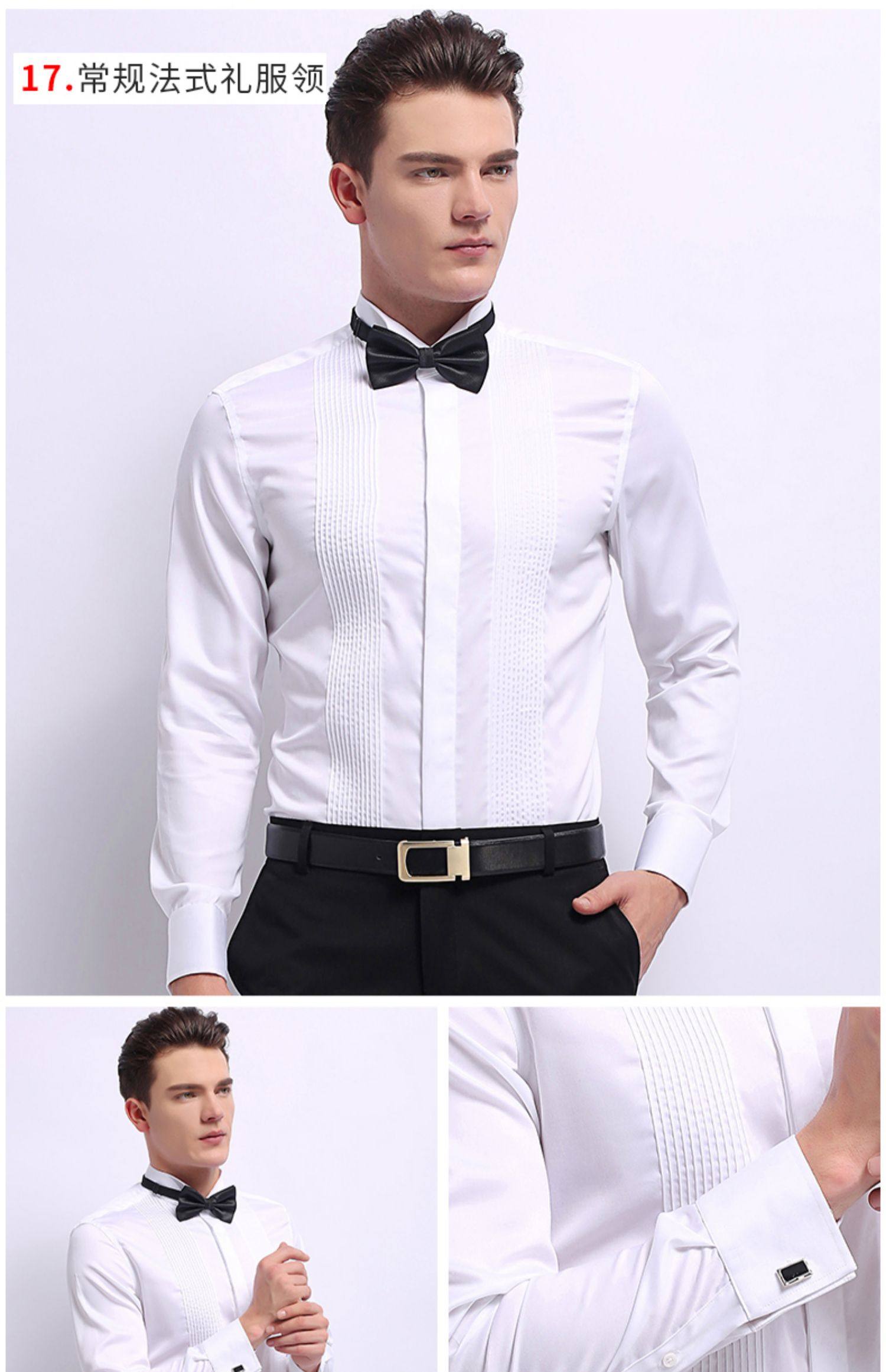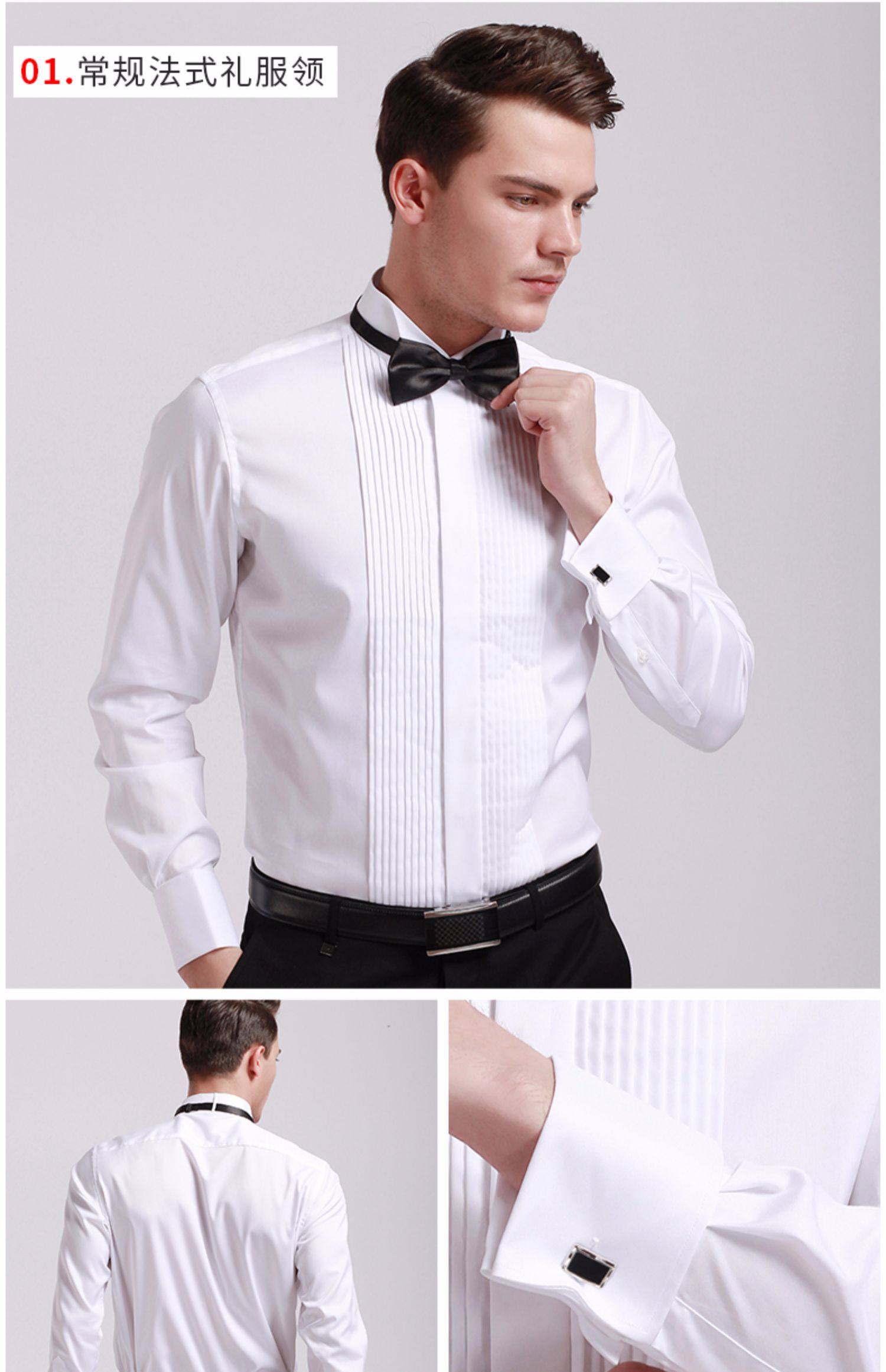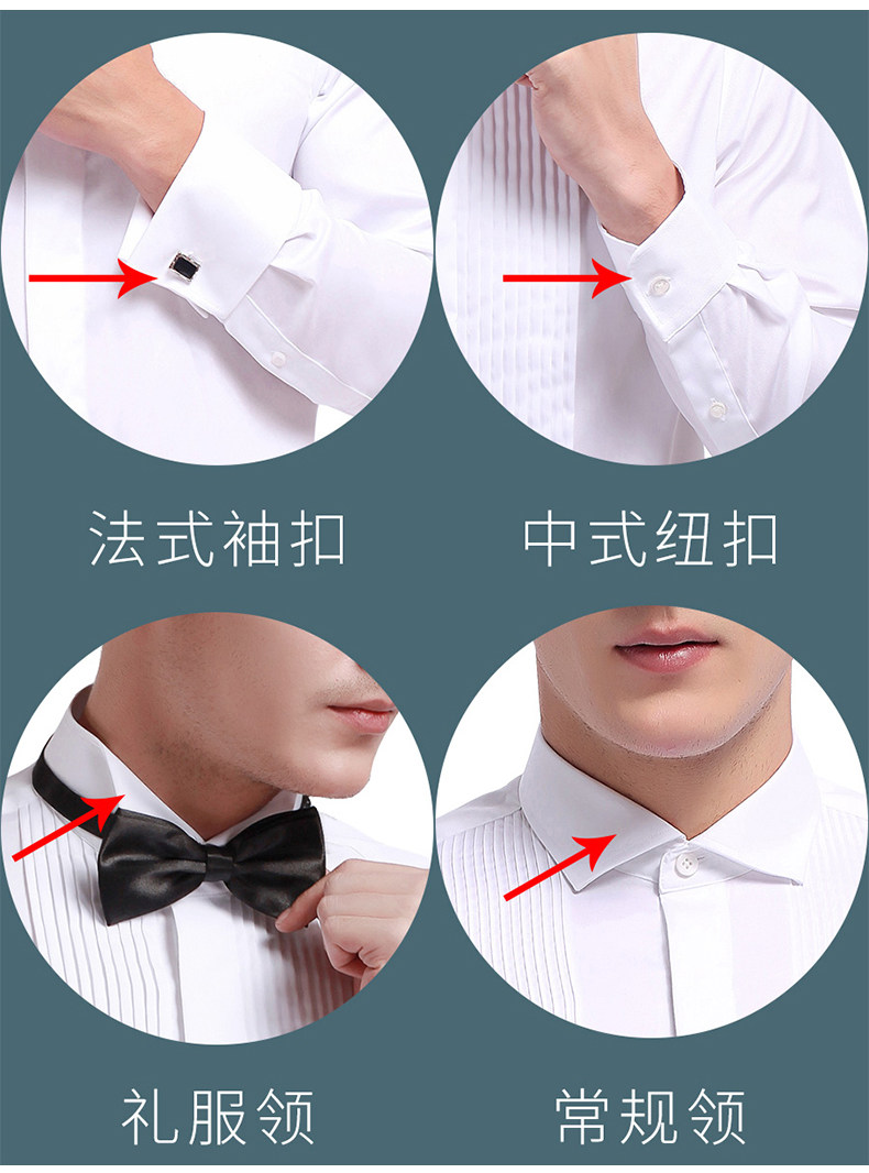 商品名称:雷德西奥法式纽扣长袖燕子领礼服衬衫男 白色 (单位:件)