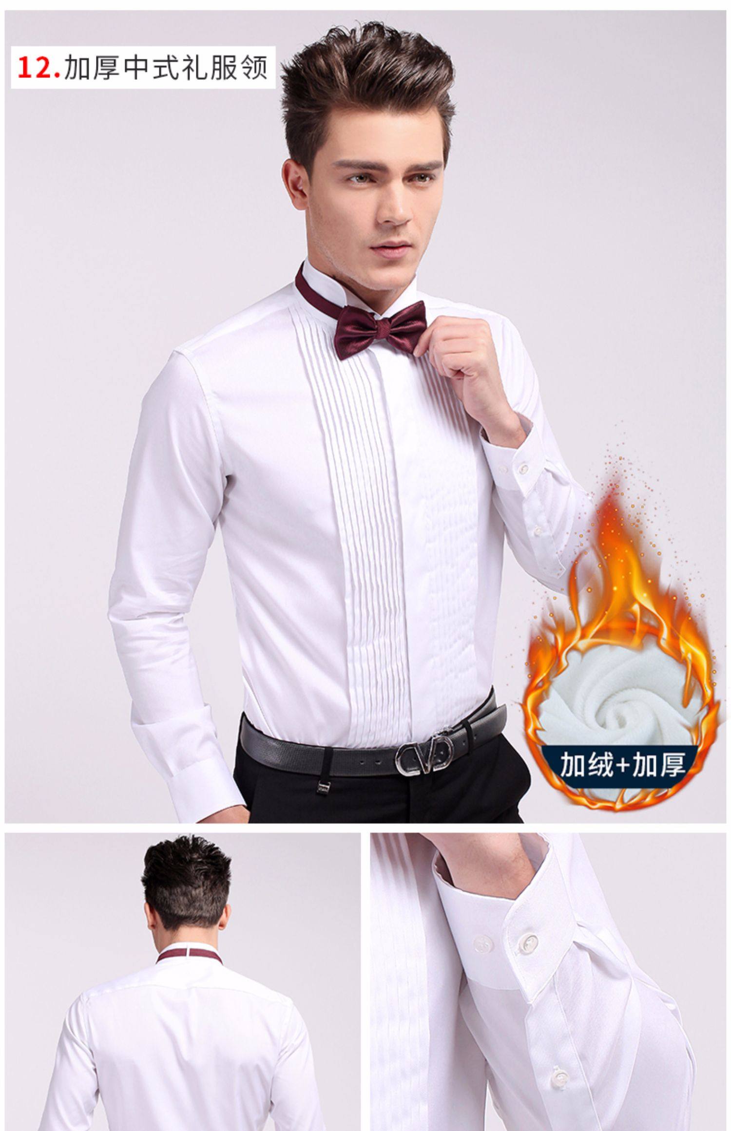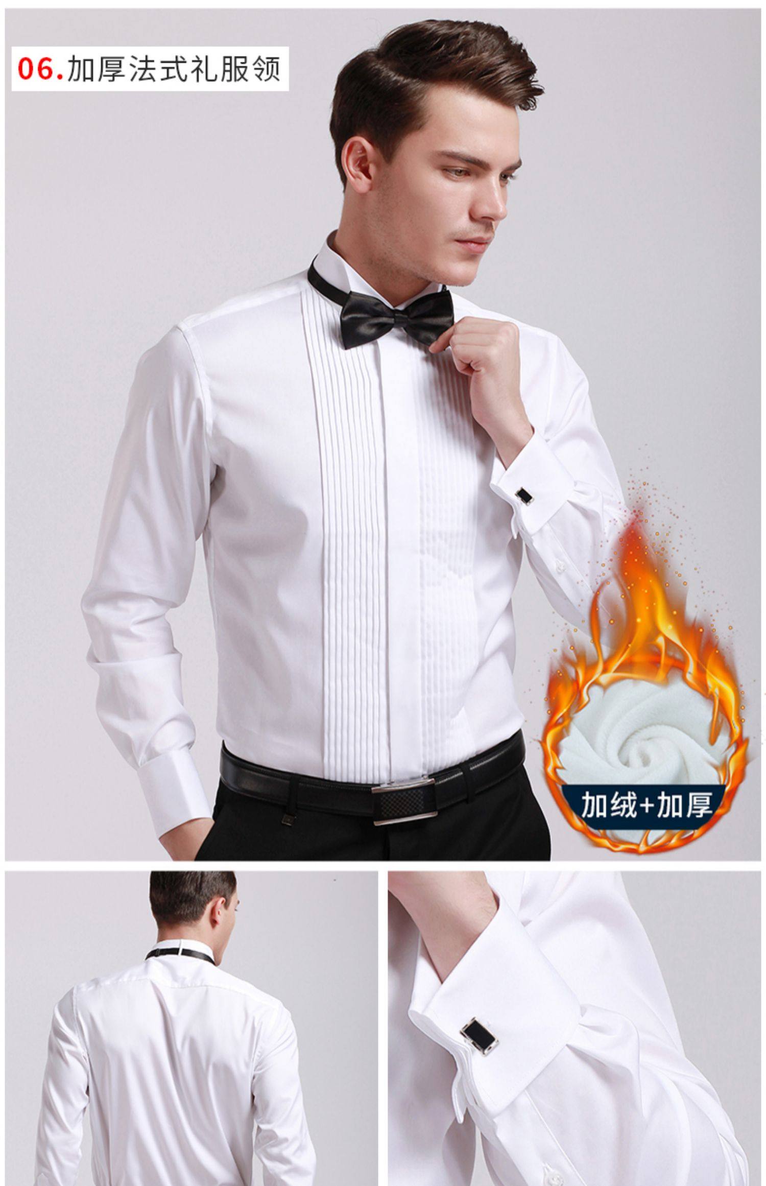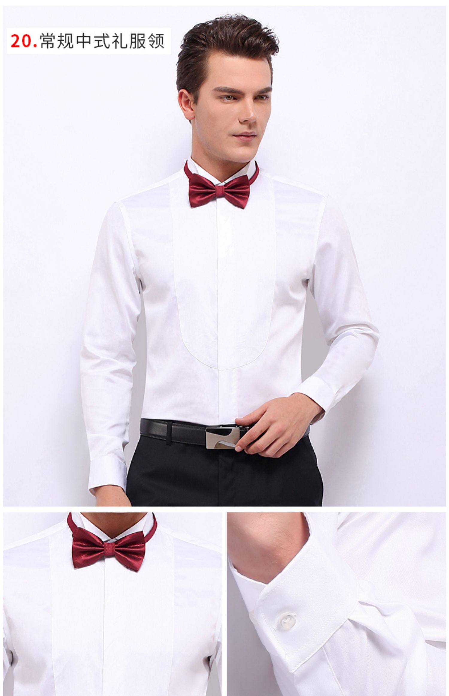 商品名称:雷德西奥法式纽扣长袖燕子领礼服衬衫男 白色 (单位:件)