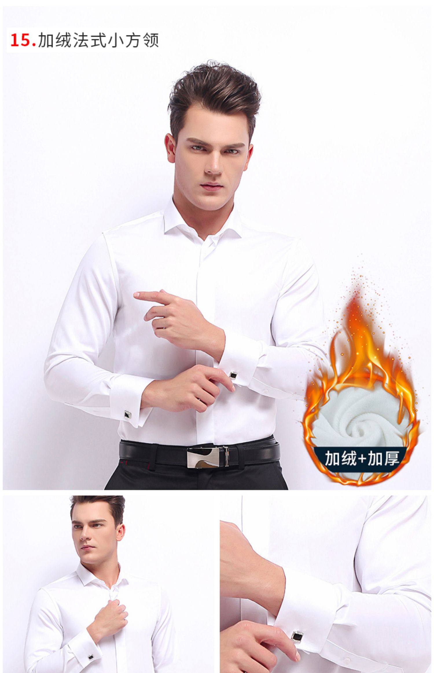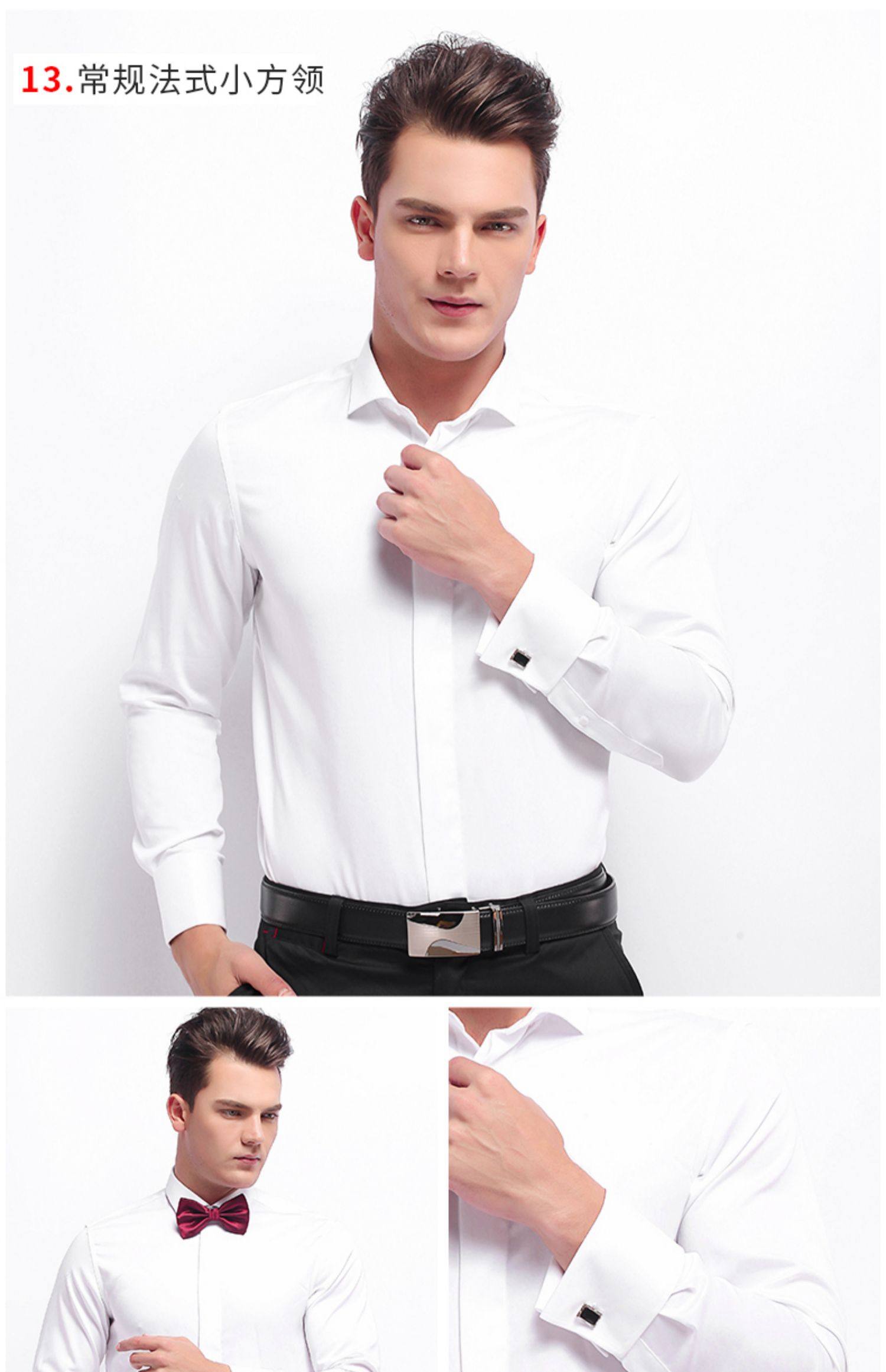 雷德西奥法式纽扣长袖燕子领礼服衬衫男 白色 (单位:件)