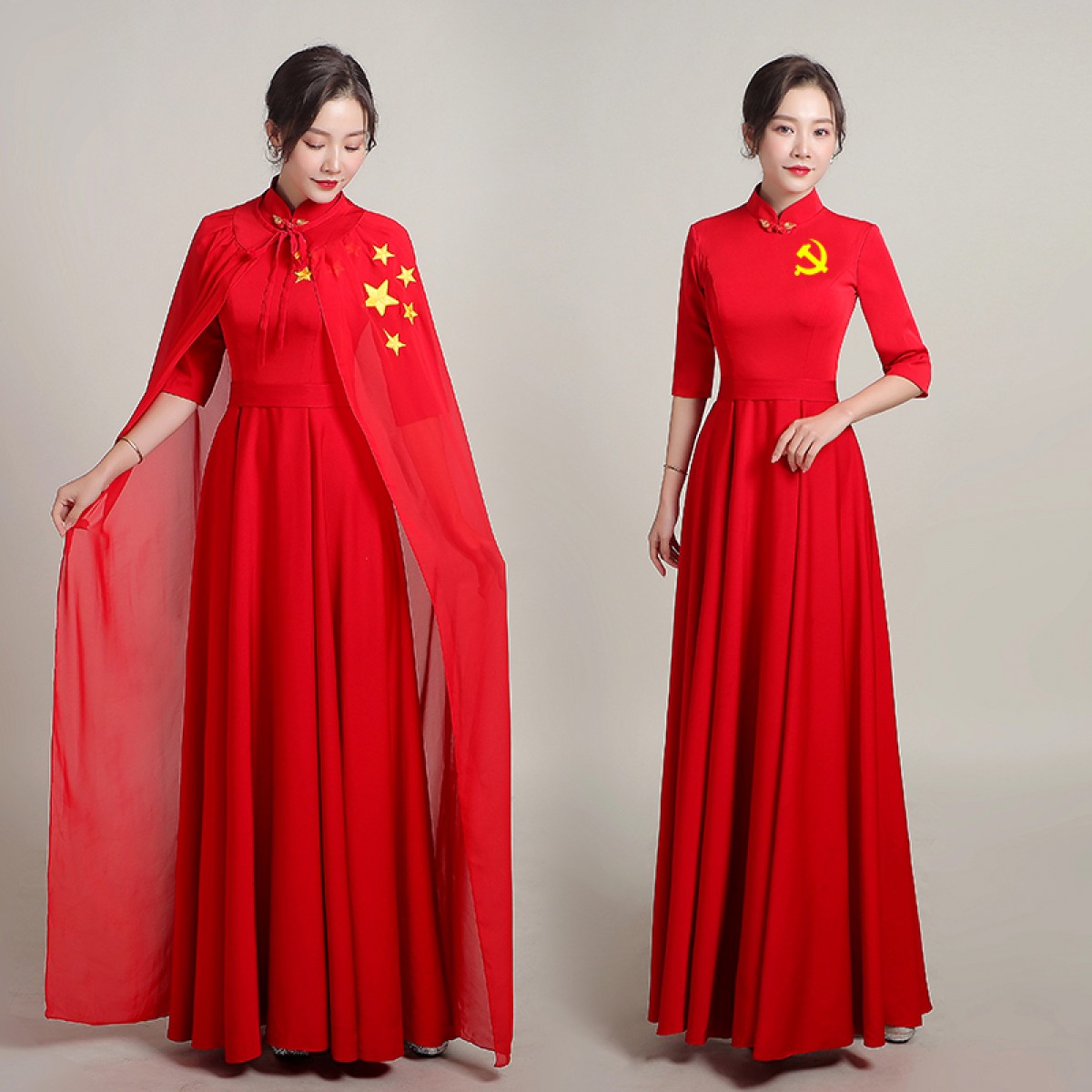 大合唱团礼服裙女2021新款红歌主持人朗诵长裙成人演出服指挥服装等多件(单位:组)