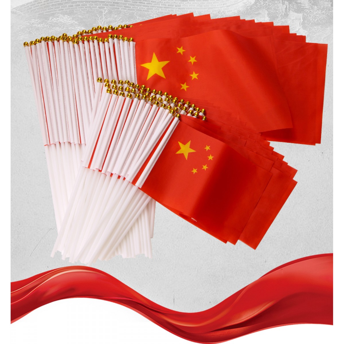 摇旗小红旗手持国旗带杆手挥旗装饰7号8号串旗国庆(单位:组)