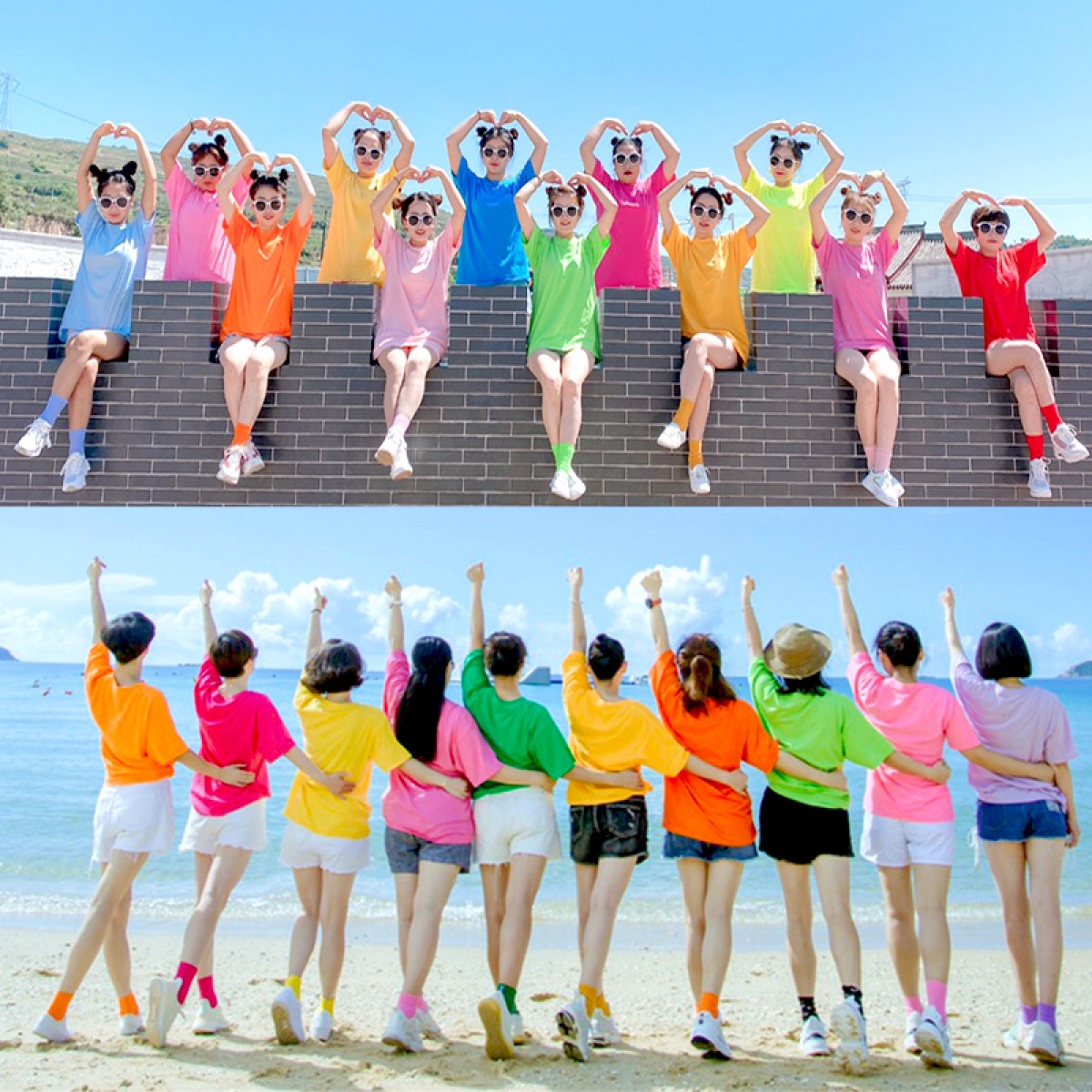 闺蜜宽松糖果彩色学生纯棉圆领聚会班服定制团队短袖T恤姐妹装女等多件(单位:组)