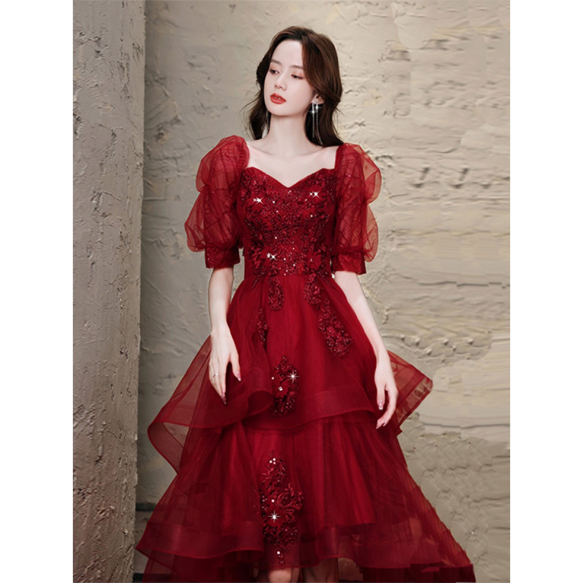 敬酒服新娘酒红色婚纱订婚结婚大合唱演出晚礼服裙女夏季(单位:件)