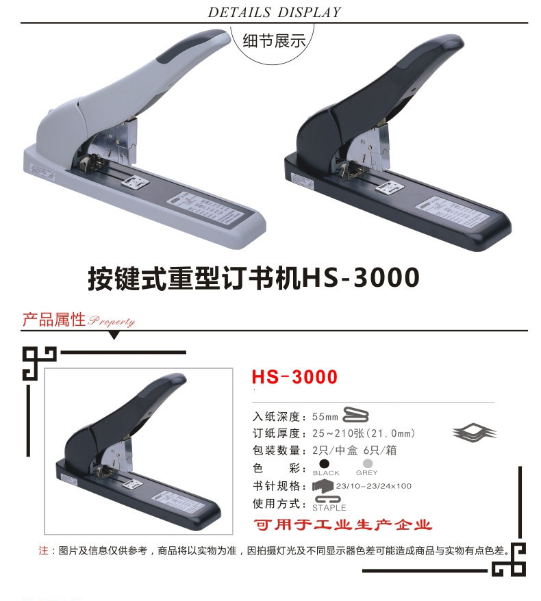 商品名称:旗文HS3000重型省力大号订书机(单位:台)