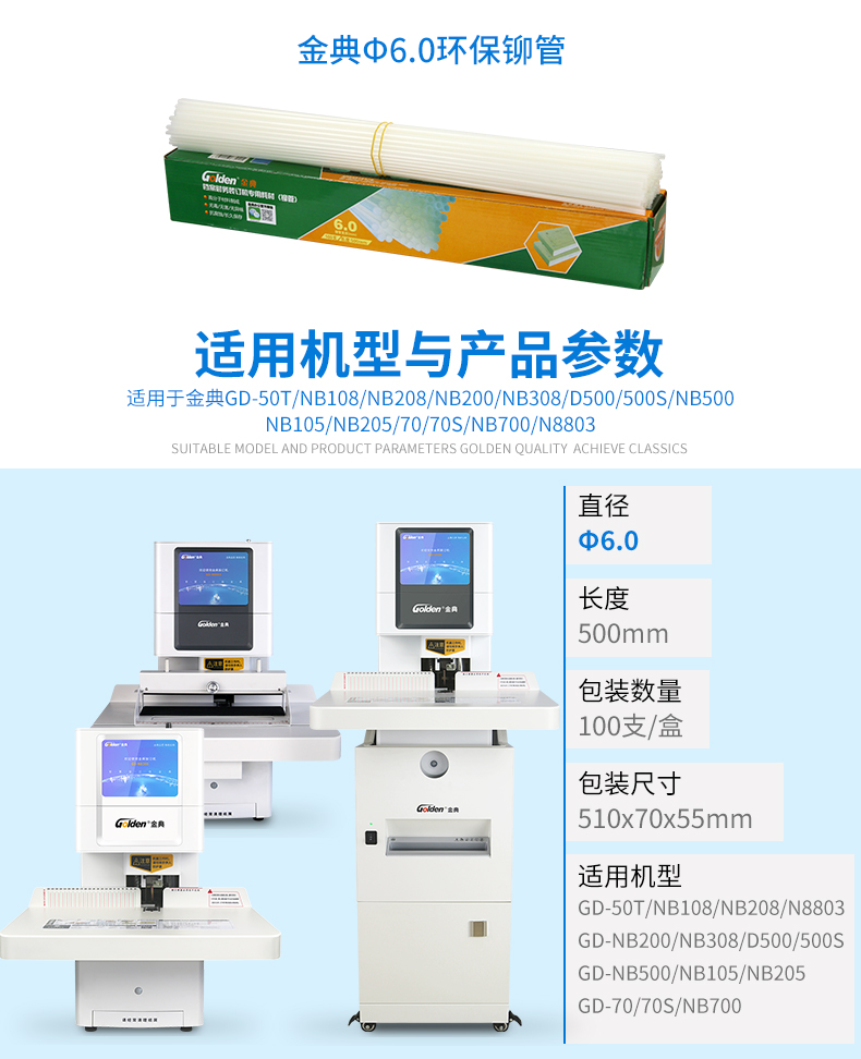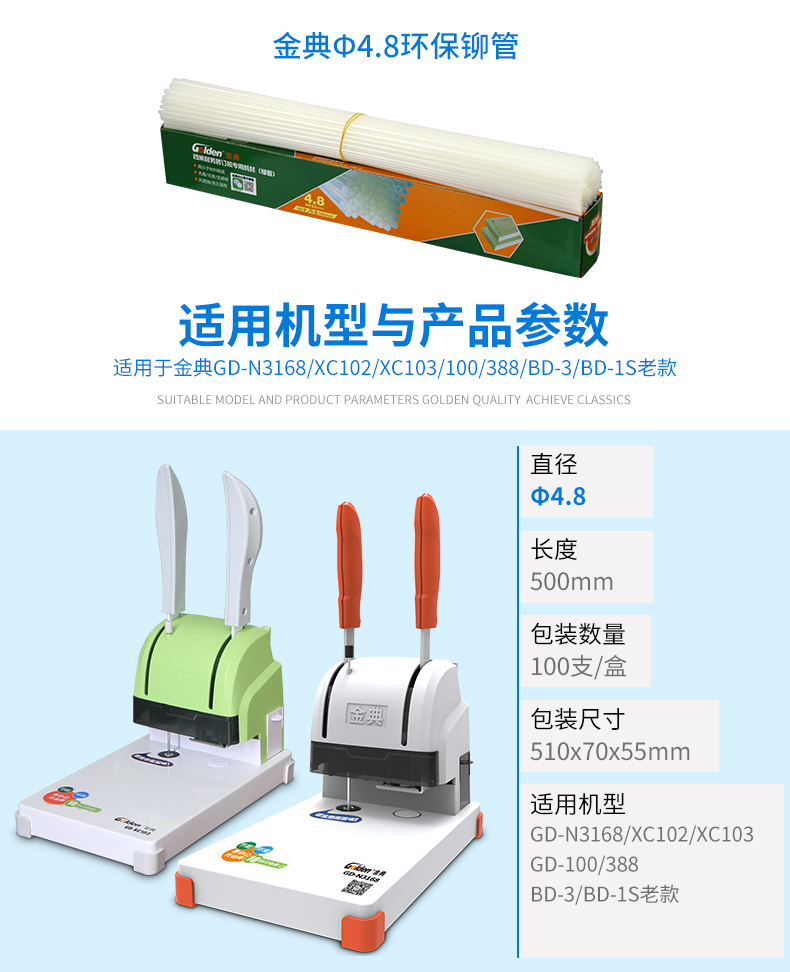 商品名称:金典5.2mm铆管装订机管热熔管(单位:盒)