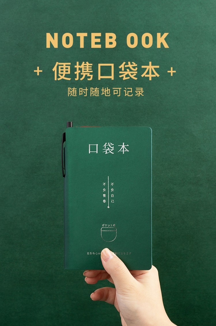 A7带笔随身携带笔记本迷你小号绿色100张/本