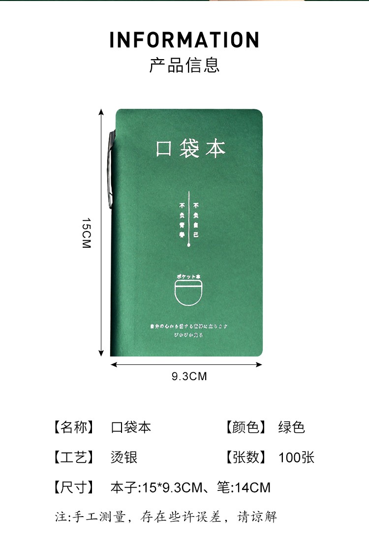 商品名称:A7带笔随身携带笔记本迷你小号绿色100张/本(单位:本)