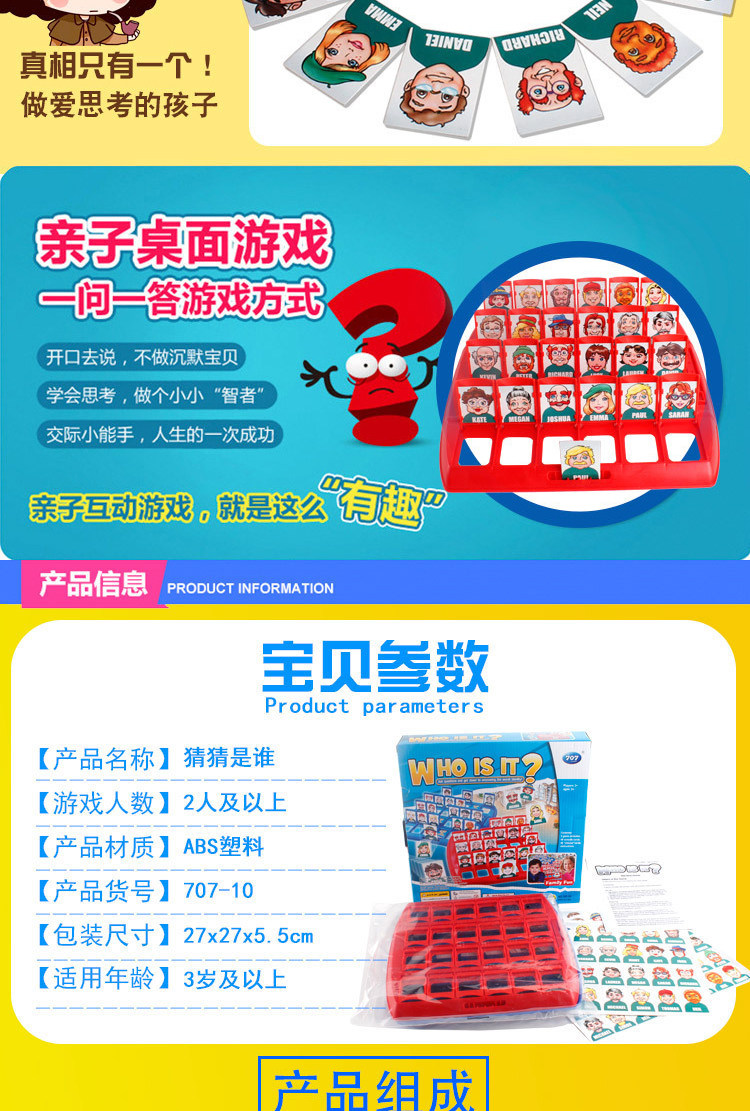 商品名称:猜猜我是谁桌游亲子互动棋牌益智玩具(单位:组)