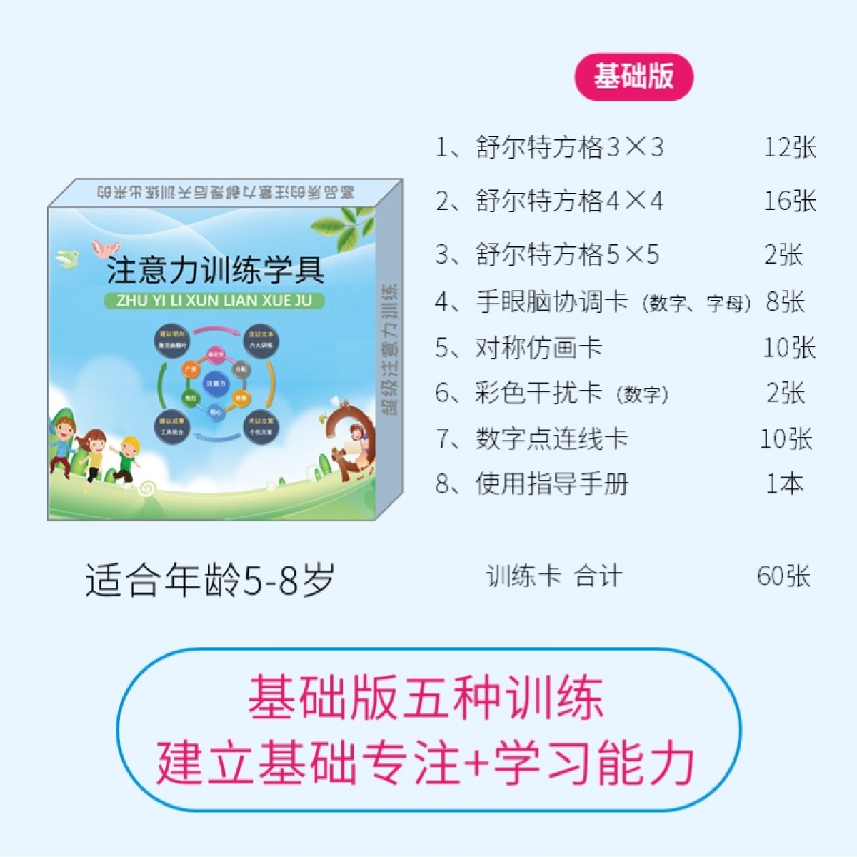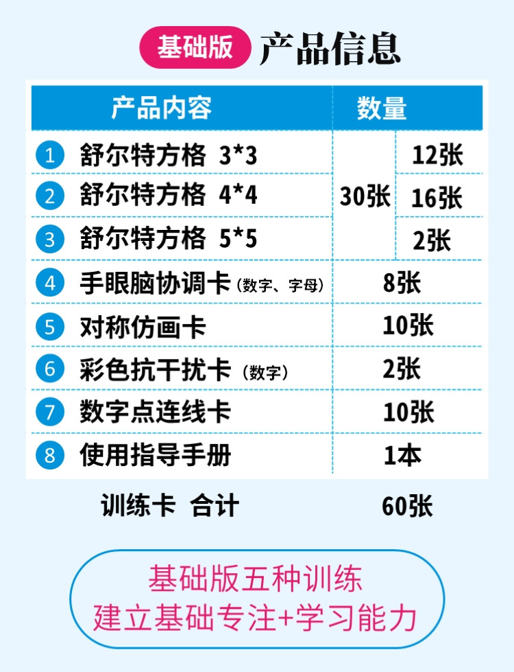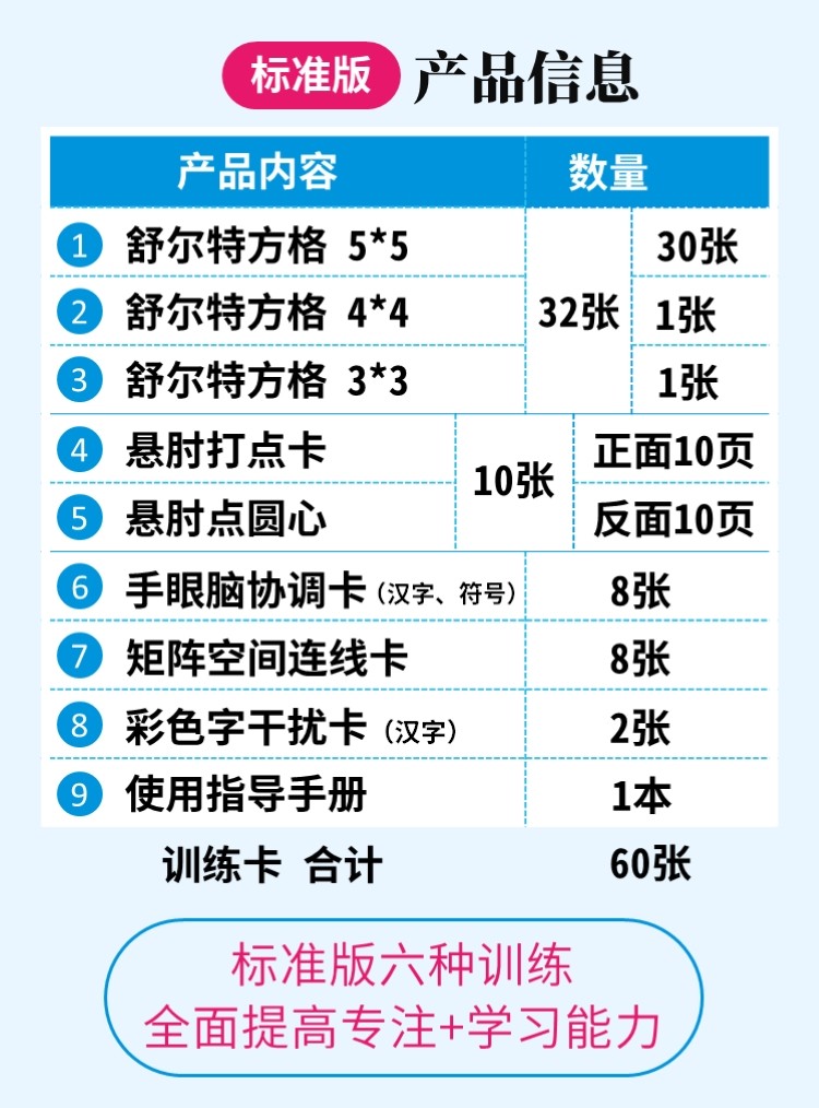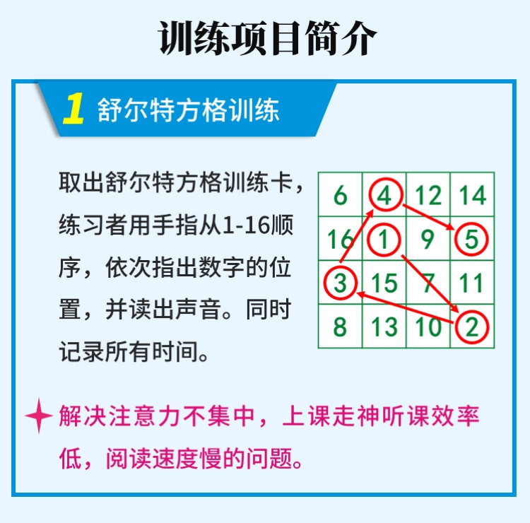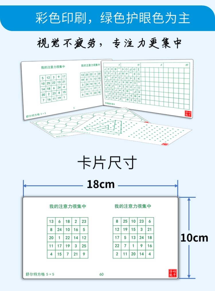 商品名称:舒尔特方格专注力训练教具神器5-8岁基础版(单位:套)