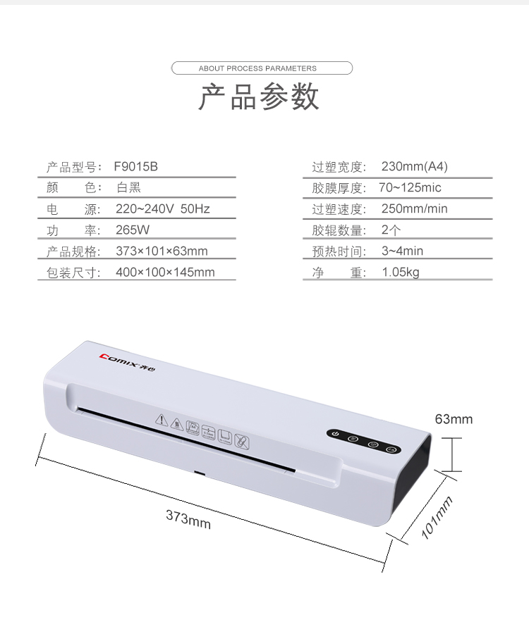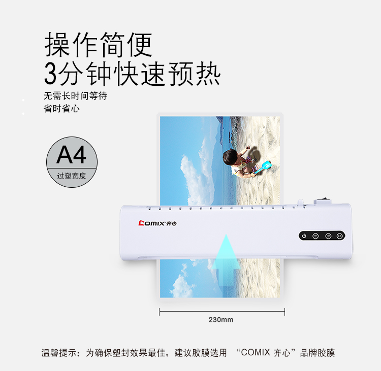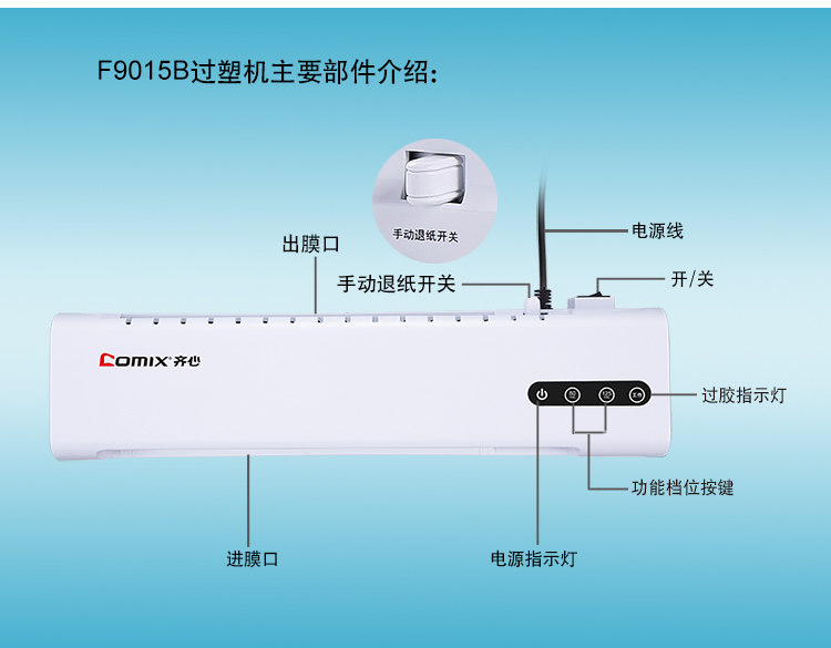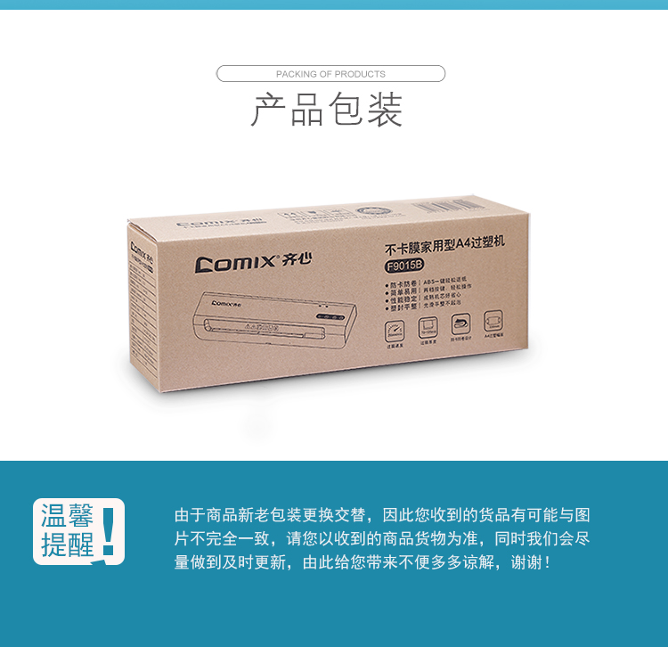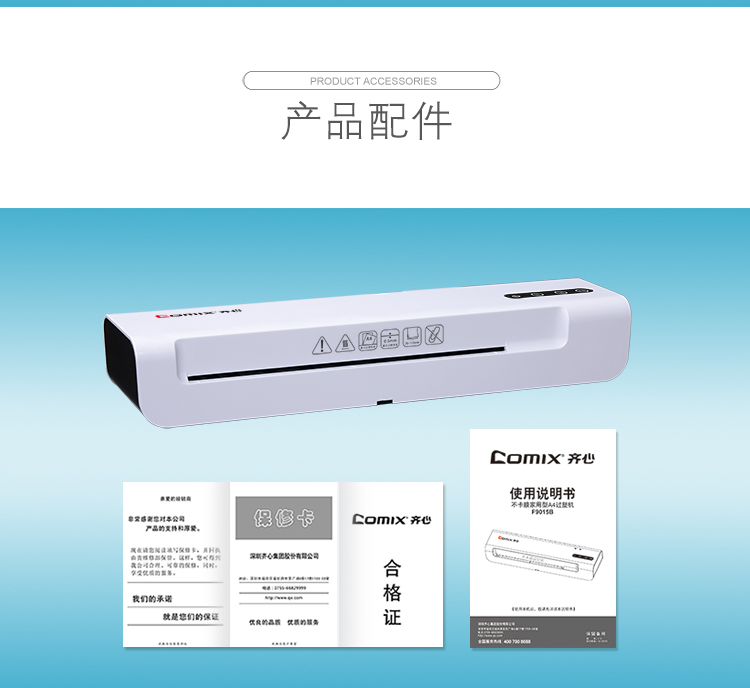 商品名称:齐心F9015B家庭式过塑机A4(单位:台)
