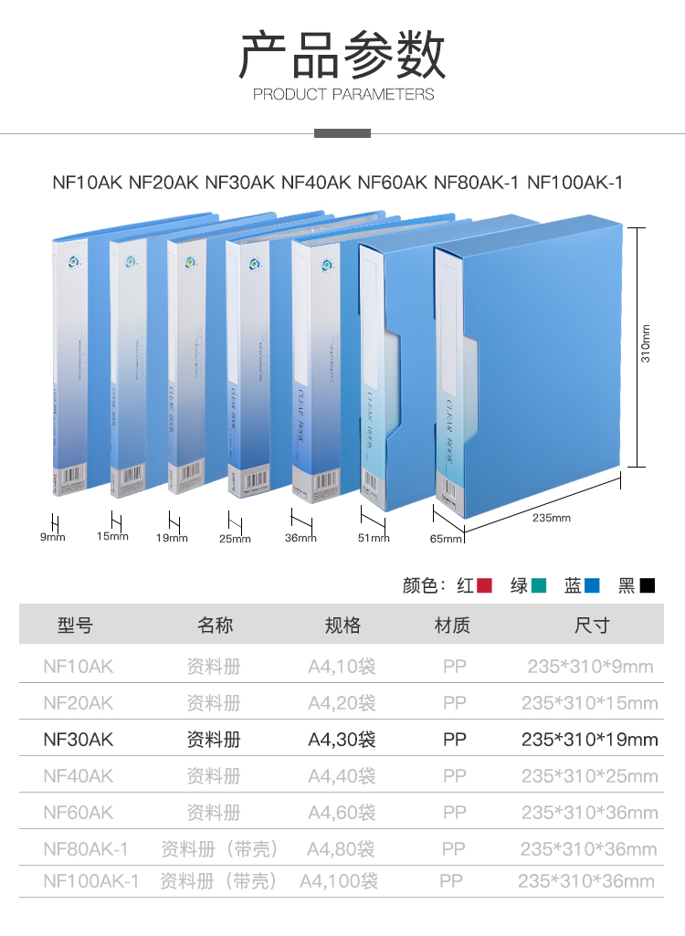 商品名称:齐心NF30AK办公资料册A4 30页(单位:个)