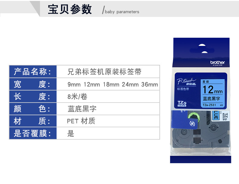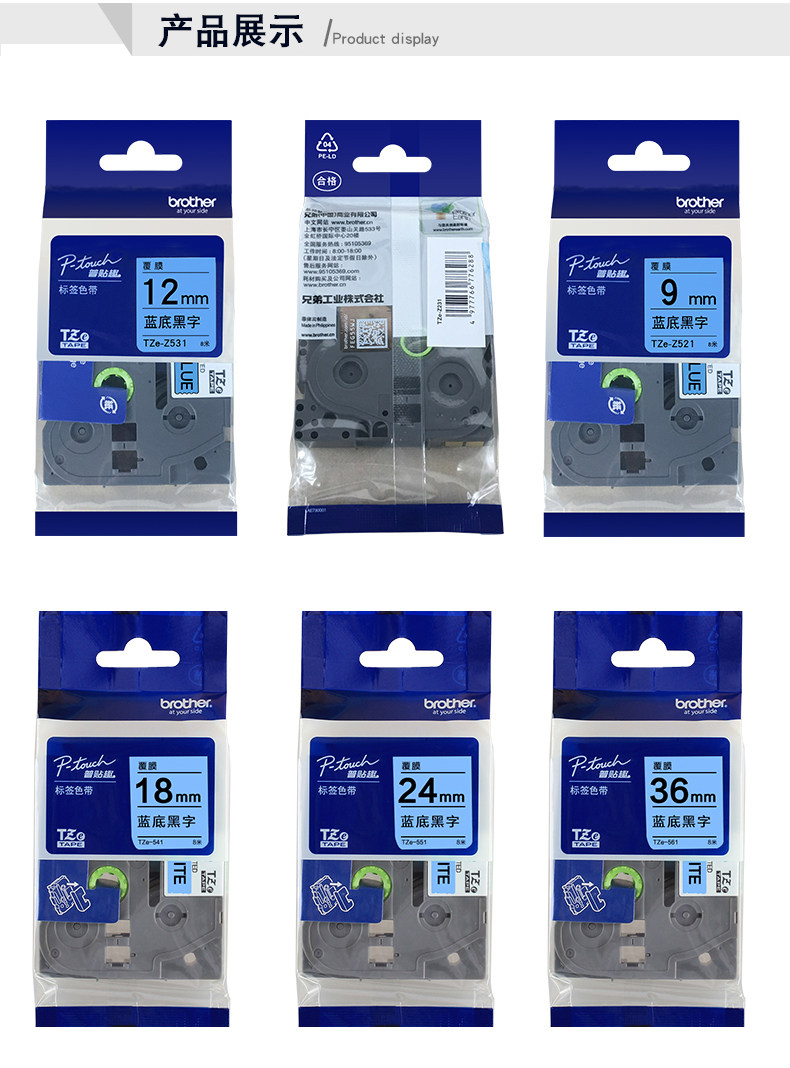 商品名称:兄弟TZE-561标签机色带 (蓝底黑字)宽度36mm(单位:个)