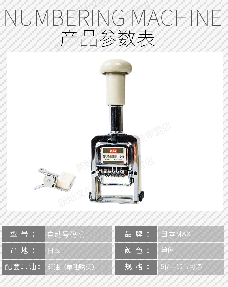 商品名称:日本美克司N504进口5位数自动号码机(单位:个)