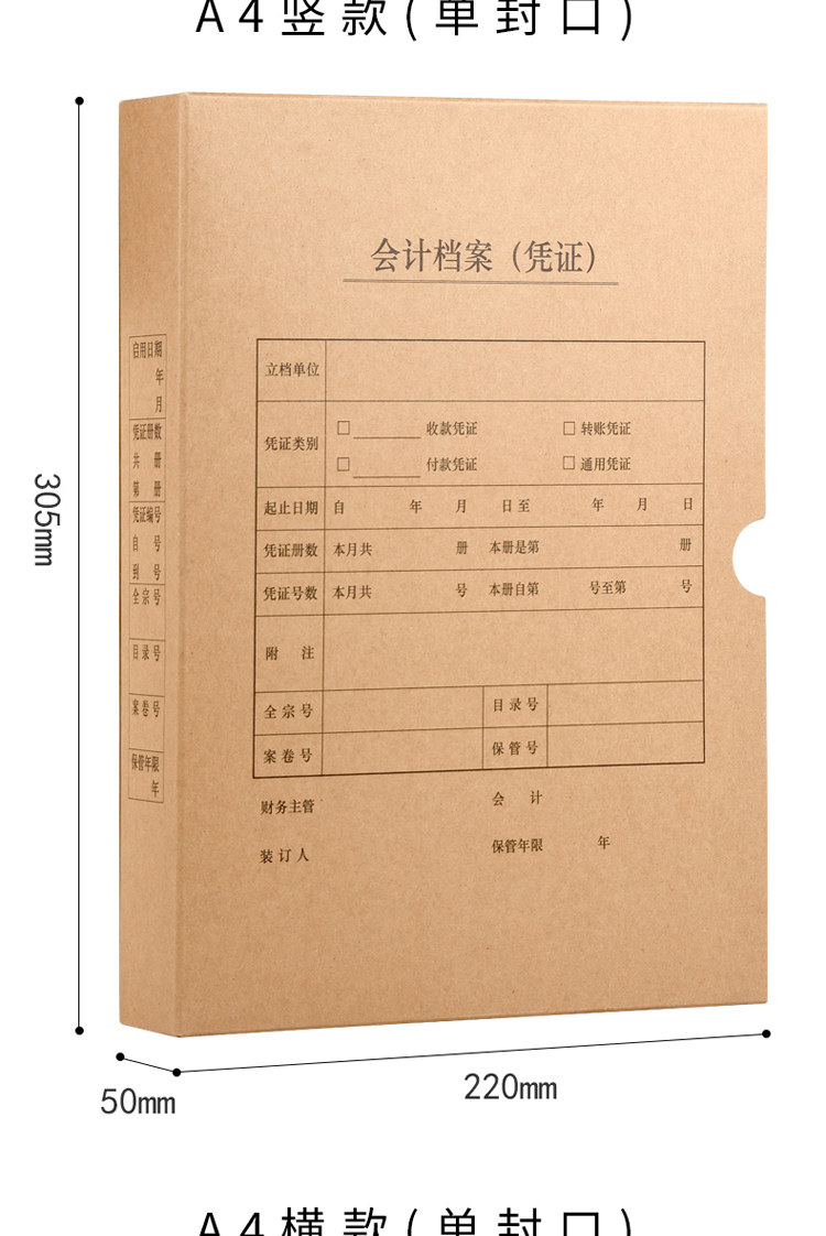 商品名称:浩立信会计档案凭证盒230*135*50mm单封口(单位:个)