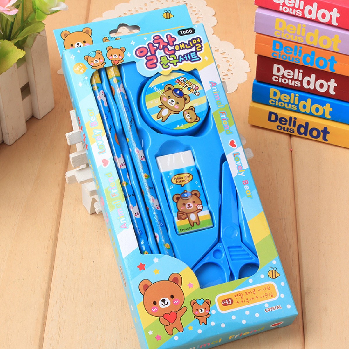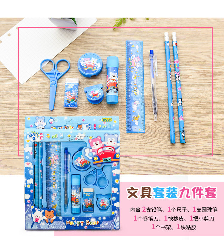 学生儿童文具套装 蓝色小熊盒装5件套(单位:套)