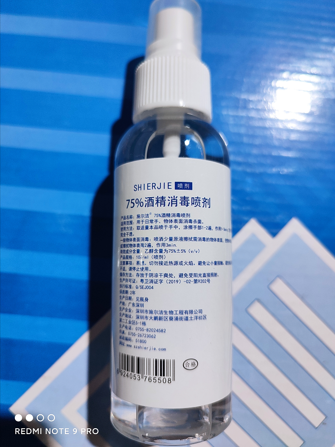 施尔洁75%酒精液喷雾型杀菌消毒100ml