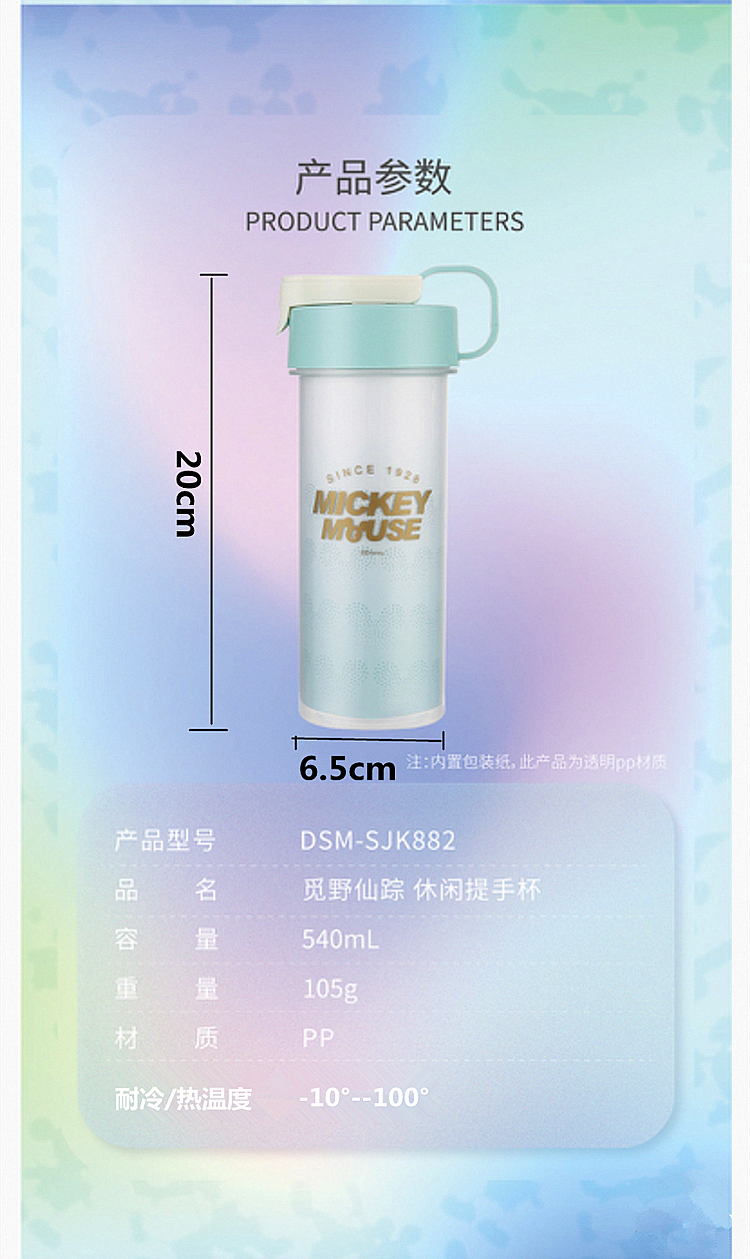 商品名称:迪士尼觅野仙踪DSM-SJK882小清新休闲提手PP水杯540mL 60个/箱(单位:个)