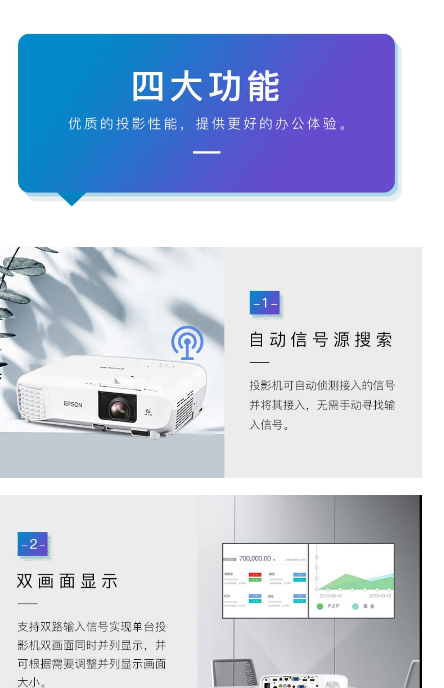 爱普生CB-982W投影仪(含品跃84英寸16:9幕布/吊架/HIMI信号线/电源线材/安装调试费用)(单位:台)