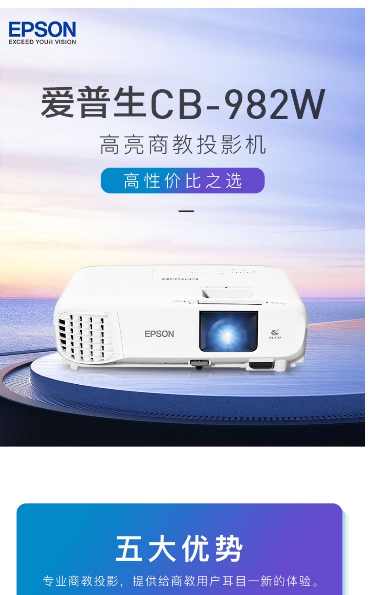 爱普生CB-982W投影仪(含品跃84英寸16:9幕布/吊架/HIMI信号线/电源线材/安装调试费用)
