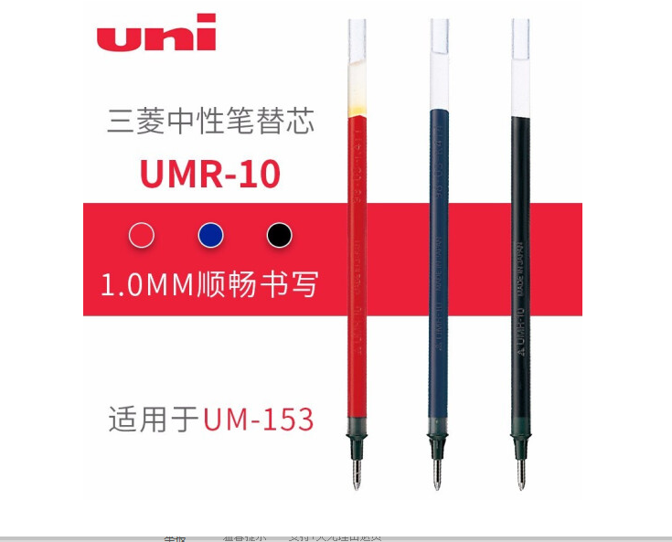 商品名称:日本三菱 UMR-10中性笔笔芯1.0mm 黑色 12支/盒 (单位;盒))