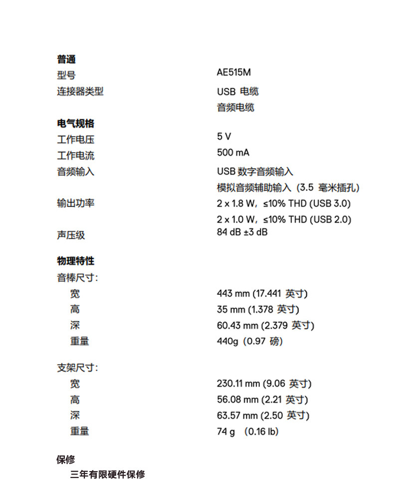 商品名称:戴尔AE515M音箱棒电脑显示器音响棒立体声带麦克风 带支架(单位:个)