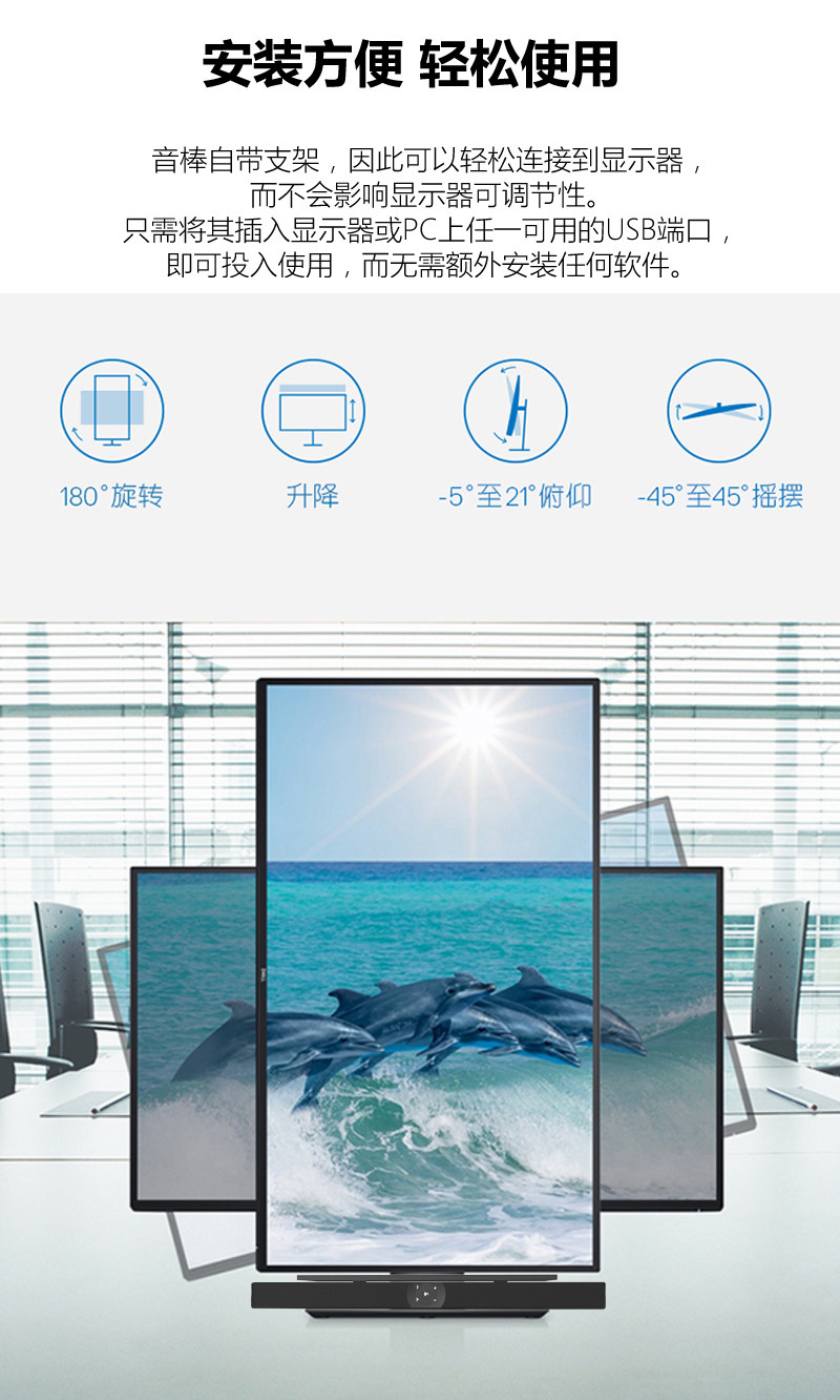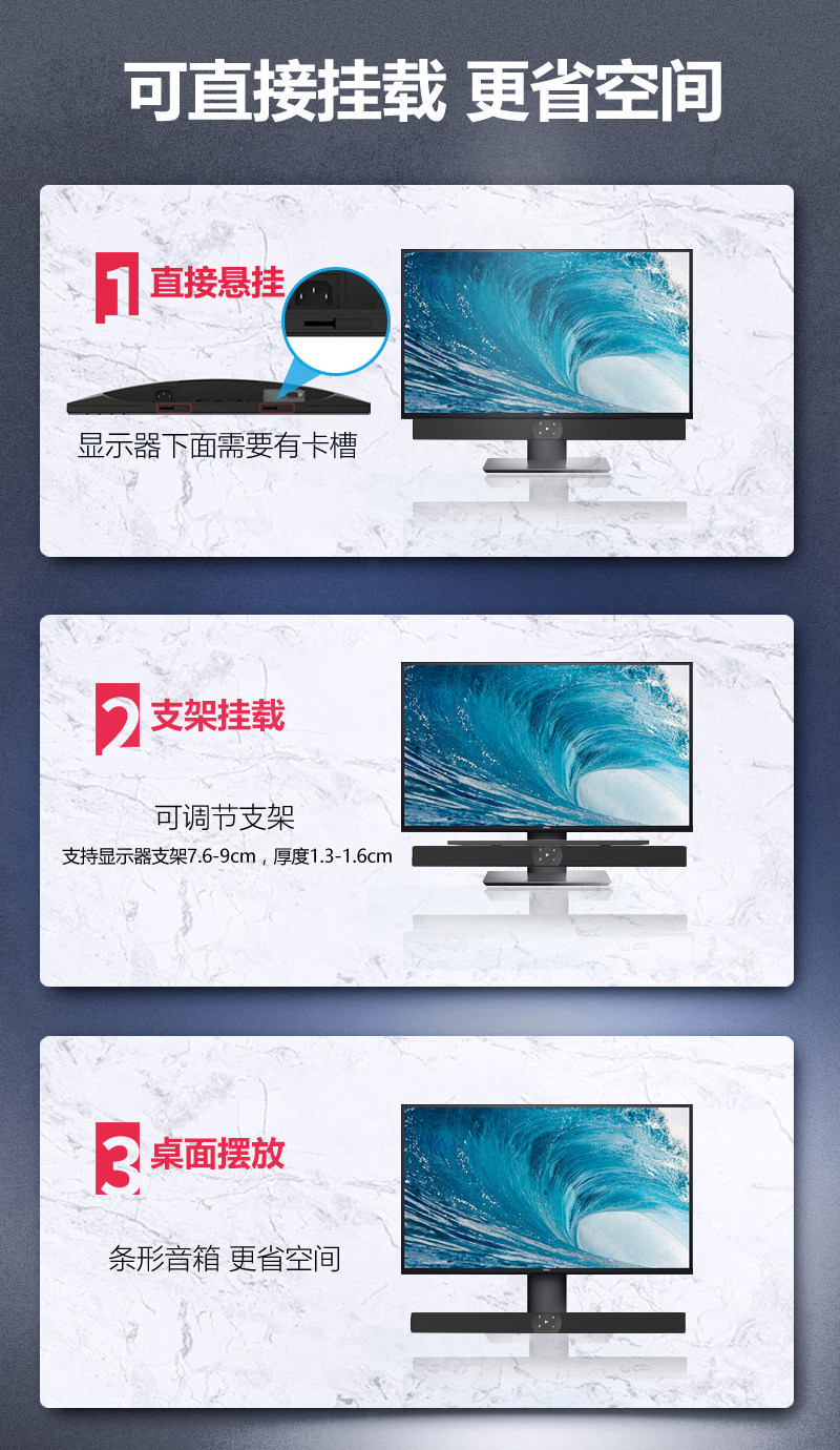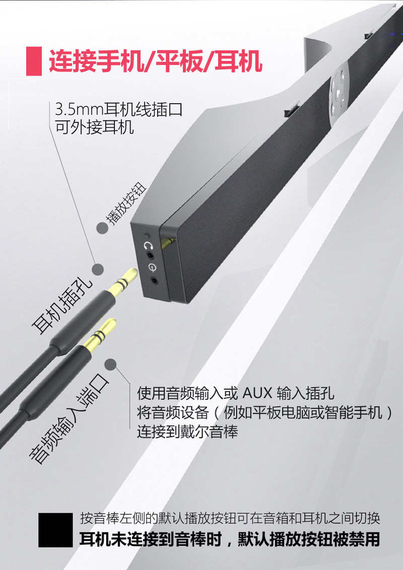 戴尔AE515M音箱棒电脑显示器音响棒立体声带麦克风 带支架