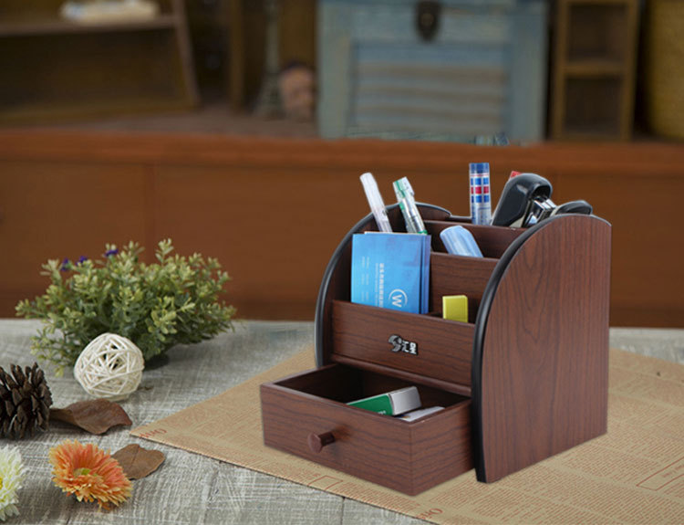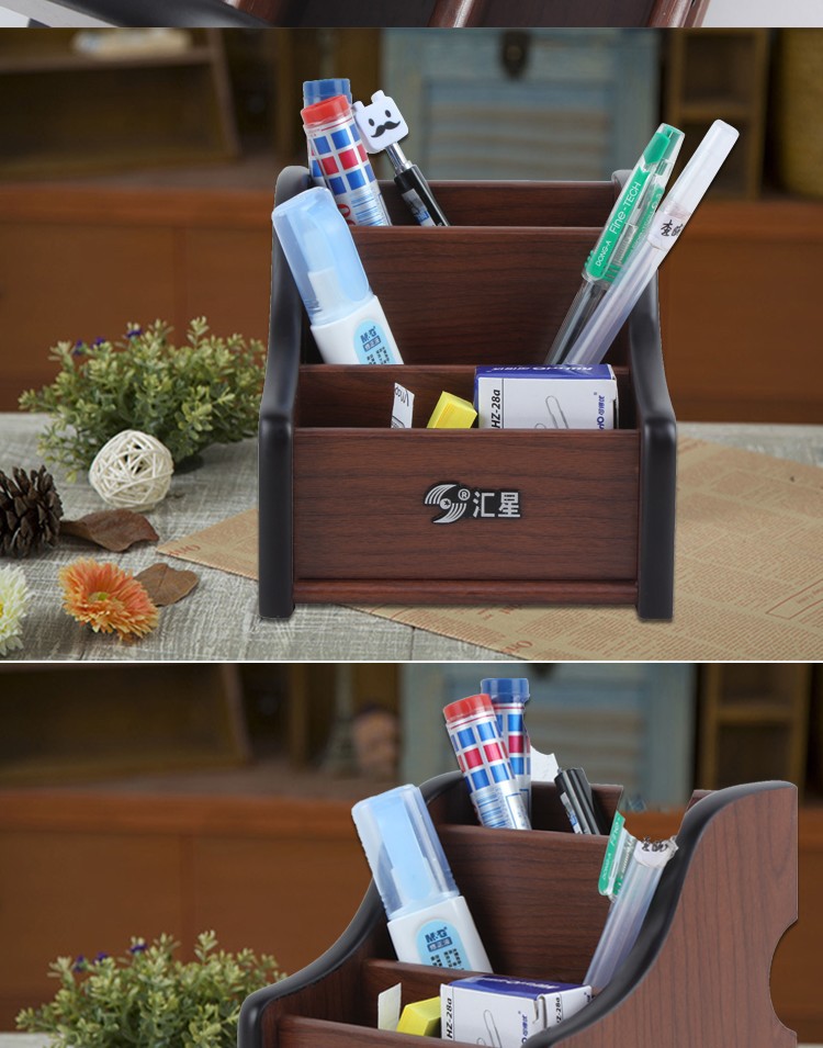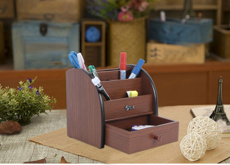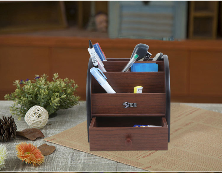 汇星HX-1020木质笔筒多功能带抽屉桌面文具收纳盒