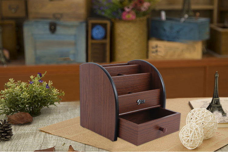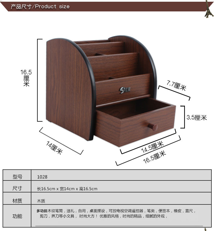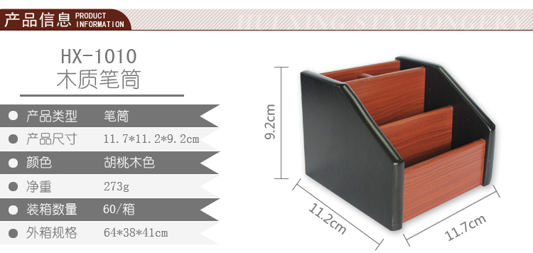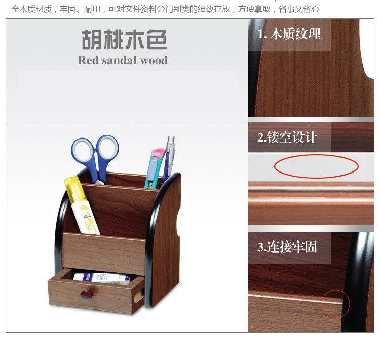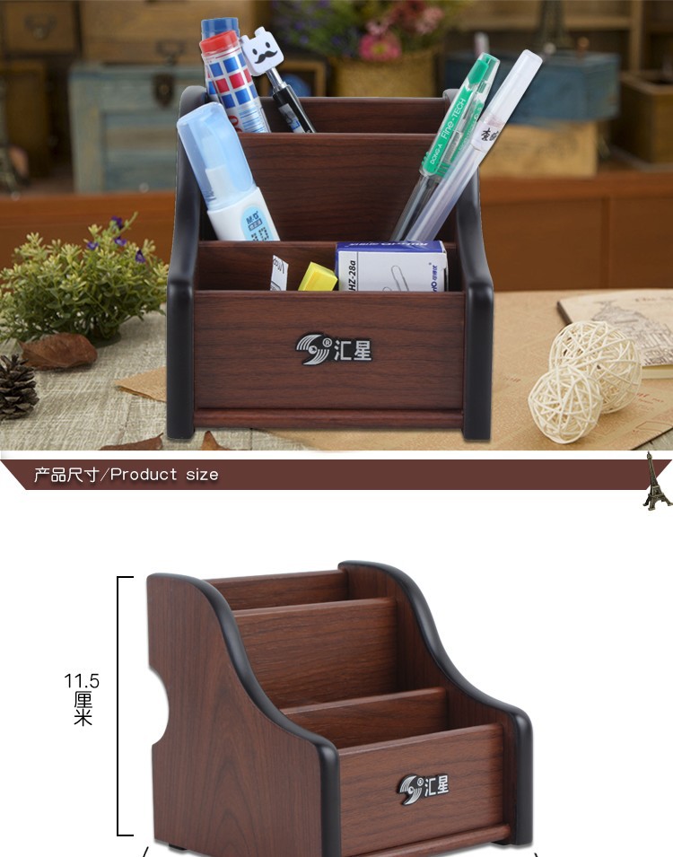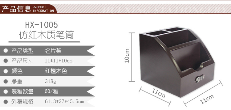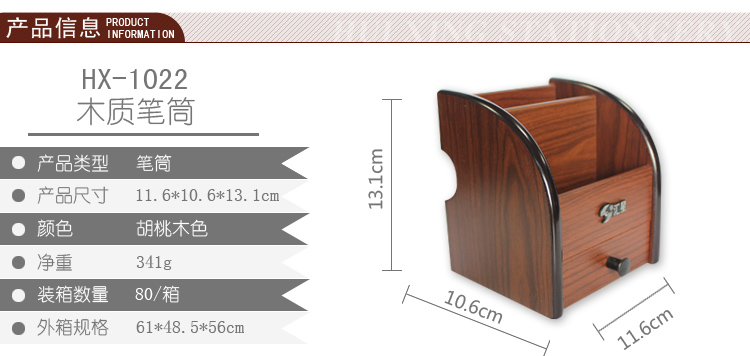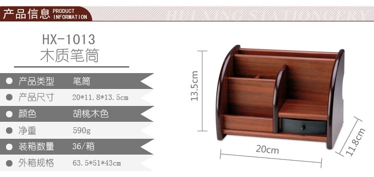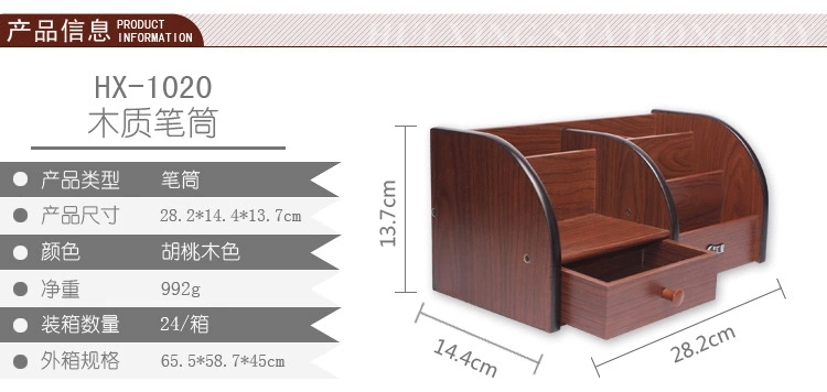 商品名称:汇星HX-1020木质笔筒多功能带抽屉桌面文具收纳盒(单位:个)