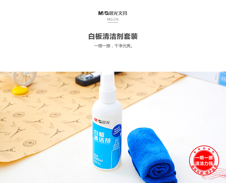 晨光ASC99365文具会议白板清洁套装 100ml白板清洁剂(黑板/绿板通用)+白板擦布(单位:套)