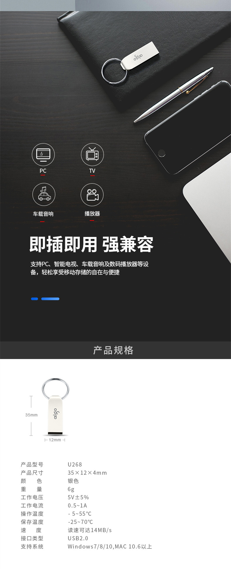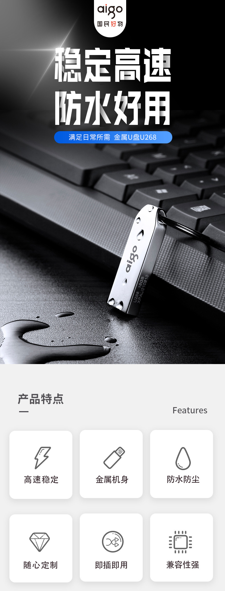 商品名称:爱国者U268迷你款U盘金属车载U盘 32GB USB2.0 银色 (单位:个)