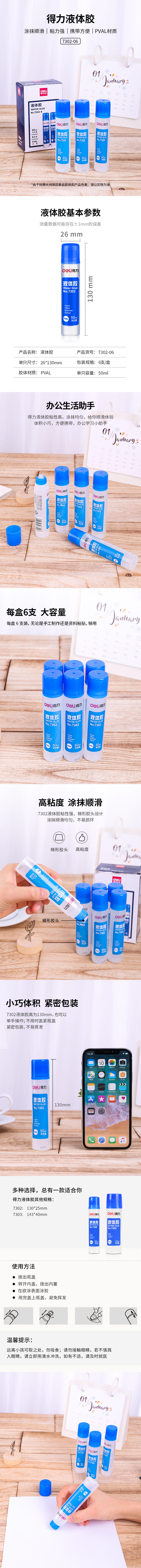 商品名称:得力7302-6透明液体胶 6支/盒(单位:盒)