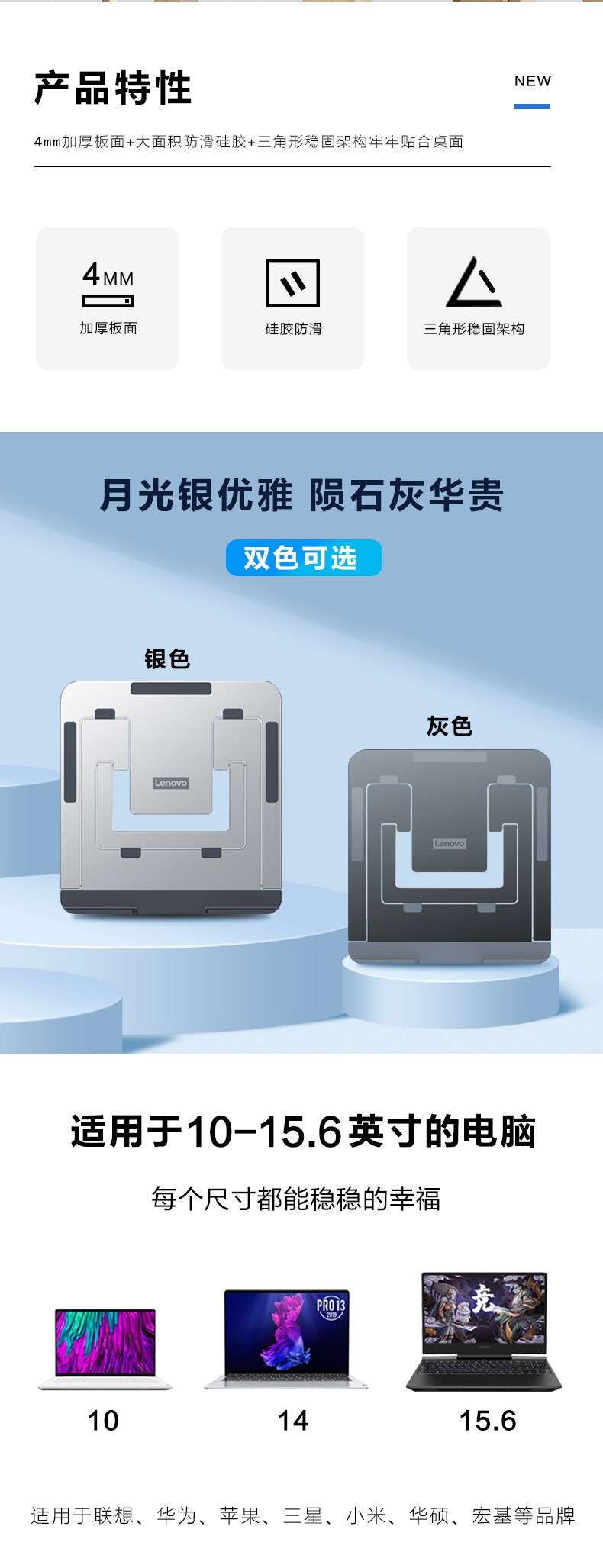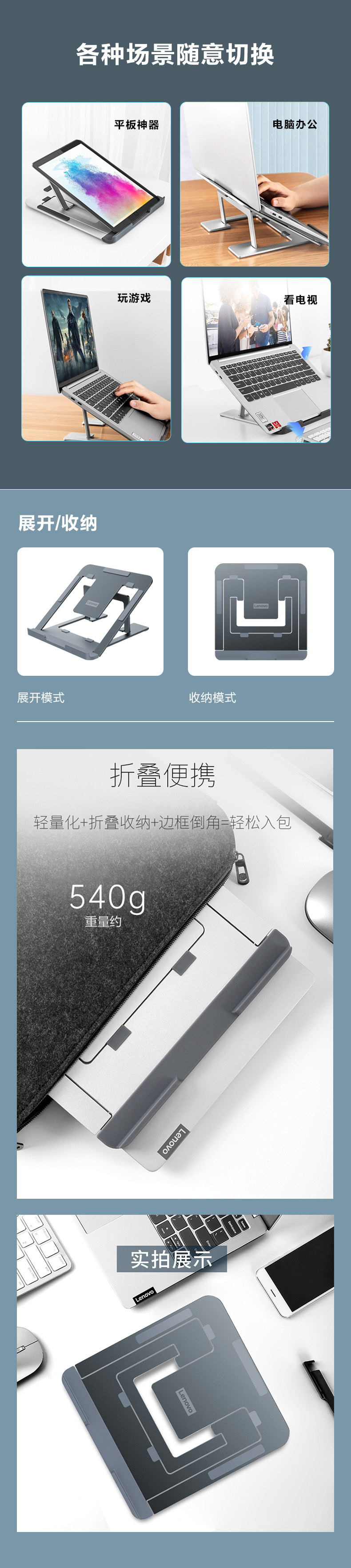 商品名称:联想NS10 PRO笔记本支架铝合金折叠便携式散热支架(单位:个)